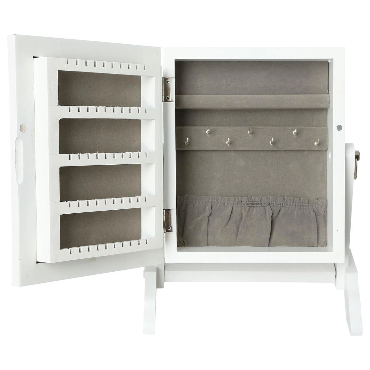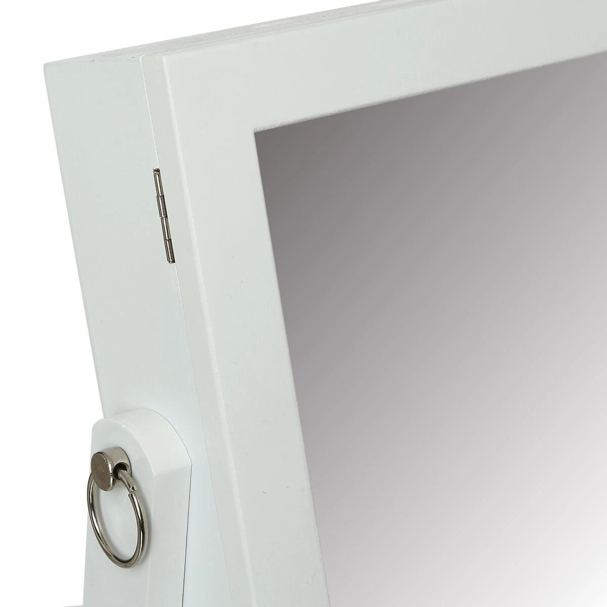 Lustro stojące z organizerem na biżuterię Kristin marki Atmosphera to praktyczny i stylowy dodatek do toaletki lub sypialni, łączący nowoczesny design z funkcjonalnością. Wykonane z wytrzymałej płyty MDF w białym kolorze i szkła, ma kompaktowe wymiary – wysokość 28,3 cm, szerokość 22,5 cm, głębokość 15 cm – dzięki czemu doskonale sprawdzi się nawet na niewielkiej komodzie czy blacie. To nie tylko lustro stojące, ale także przemyślany organizer, który pozwoli zachować porządek wśród ulubionej biżuterii.