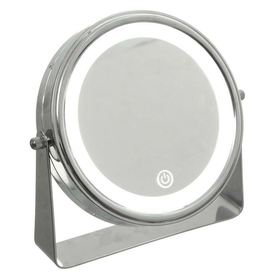 Okrągłe lustro LED stojące 5five simply smart to połączenie funkcjonalności i stylu – idealne do makijażu, codziennej pielęgnacji oraz dekoracji toaletki. Wyróżnia je metalowa, srebrna rama w modnym stylu loft, kompaktowy rozmiar (średnica 19 cm, wysokość całkowita 21 cm) i praktyczne podświetlenie LED, które gwarantuje doskonałą widoczność nawet przy słabym świetle. Obracane lustro pozwala precyzyjnie dopasować kąt widzenia, a solidne wykonanie zapewnia trwałość na lata.
