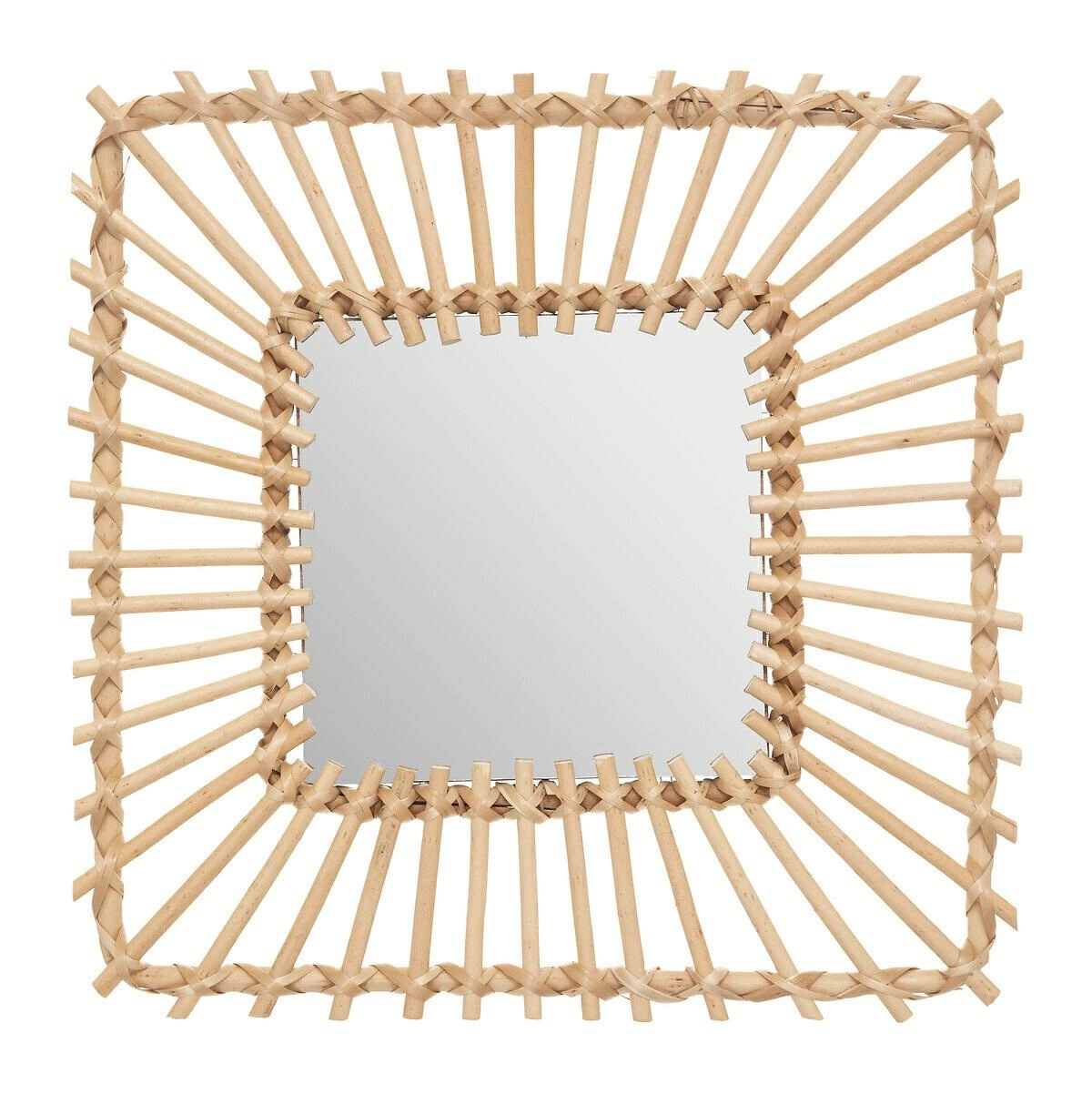 Lustro kwadratowe wiszące Leoini 40x40 cm marki Atmosphera to dekoracyjny akcent w stylu boho, który łączy naturalny rattan z wyjątkowym designem. Kwadratowa forma i ręcznie wyplatana rama z rattanu nadają mu lekkości oraz subtelnej przytulności, idealnie podkreślając charakter przedpokoju, sypialni lub garderoby. Zwierciadło o wymiarach 40x40 cm zapewnia wyraźny obraz, a praktyczna możliwość zawieszenia czyni je komfortowym rozwiązaniem do codziennego użytkowania.