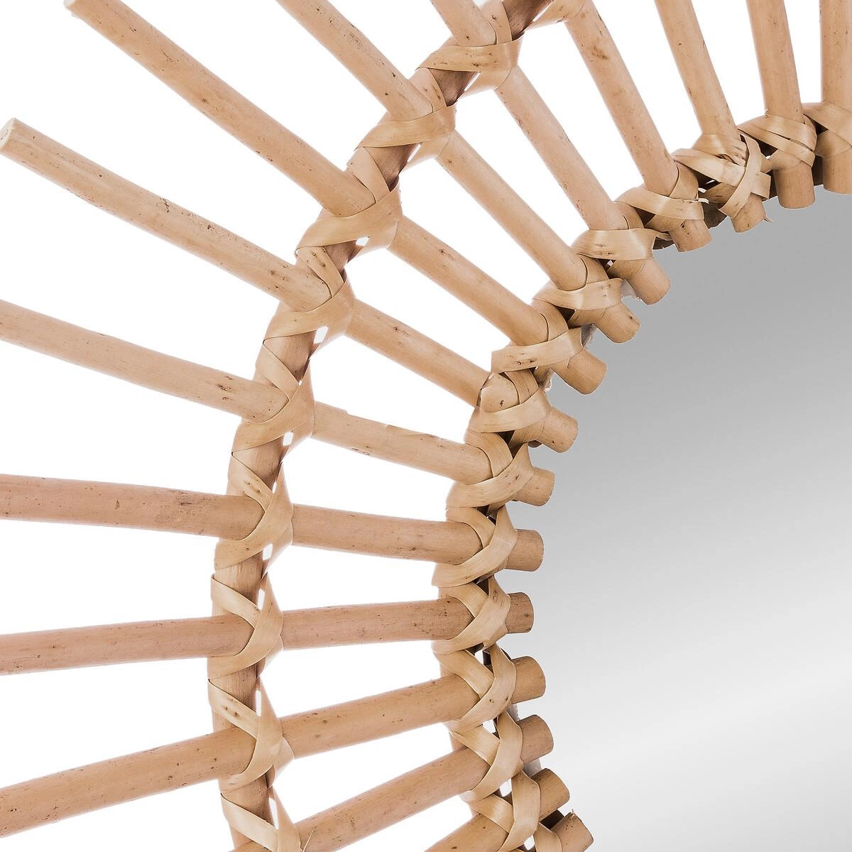 Lustro okrągłe boho Sun Atmosphera to dekoracyjny akcent o średnicy 58 cm, wykonany z naturalnego drewna wierzbowego i szkła. Wyróżnia się ręcznie plecioną ramą w ciepłym, naturalnym kolorze oraz lekką, wiszącą konstrukcją. Idealnie sprawdzi się jako lustro do salonu lub sypialni, wprowadzając do wnętrz swobodny styl boho i optycznie powiększając przestrzeń.
