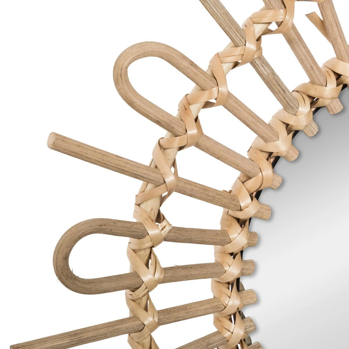 Wytrzymała rama wykonana z rattanu i wikliny gwarantuje trwałość, a jednocześnie nadaje lustru lekkości wizualnej. Wnętrze lustra o średnicy 23 cm pozwala wygodnie przejrzeć się przed wyjściem z domu lub podczas codziennych rytuałów. Konstrukcja oparta na solidnej płycie zapewnia łatwy i bezpieczny montaż na ścianie. To świetny wybór dla osób poszukujących lustra okrągłego do salonu lub sypialni, które podkreśli indywidualny charakter pomieszczenia.