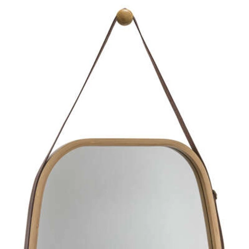 Lustro owalne bambusowe 43x77 cm na skórzanym pasku marki 5five simply smart to wyjątkowe lustro do przedpokoju, sypialni lub salonu, które wyróżnia się naturalną ramą z drewna bambusowego i eleganckim, pionowym kształtem. Dzięki wymiarom 77 cm wysokości i 43 cm szerokości, lustro idealnie sprawdzi się jako dekoracyjny, a zarazem praktyczny akcent w każdym wnętrzu. Skórzany pasek pozwala na wygodne zawieszenie na ścianie, podkreślając lekkość oraz styl boho lub skandynawski Twojego domu.
