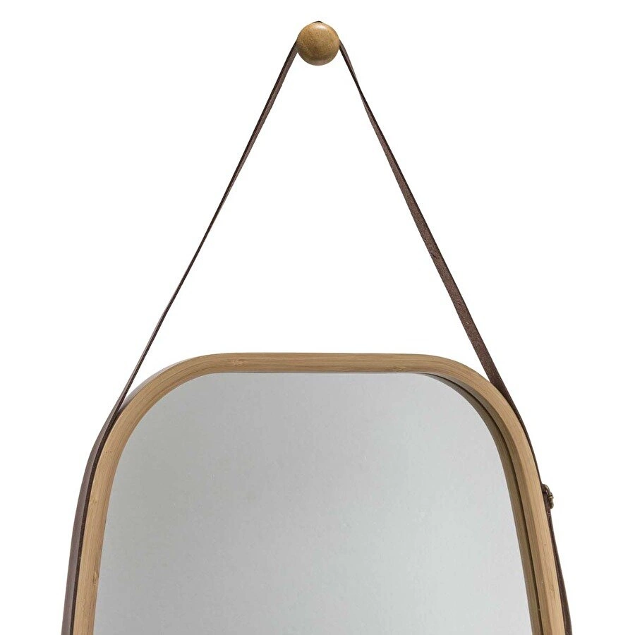 Lustro owalne w drewnianej ramie to propozycja dla osób ceniących naturalne materiały i ponadczasowy design. Wytrzymała rama z bambusa nie tylko pięknie się prezentuje, ale także wprowadza do wnętrza ciepłą, organiczną atmosferę. Skórzany pasek to oryginalny detal, który podkreśla charakter lustra i ułatwia jego montaż na ścianie – bez konieczności kłopotliwego wiercenia wielu otworów. Połączenie drewna bambusowego i skóry sprawia, że lustro staje się nie tylko funkcjonalnym dodatkiem, ale także wyrazistą dekoracją ściany.
