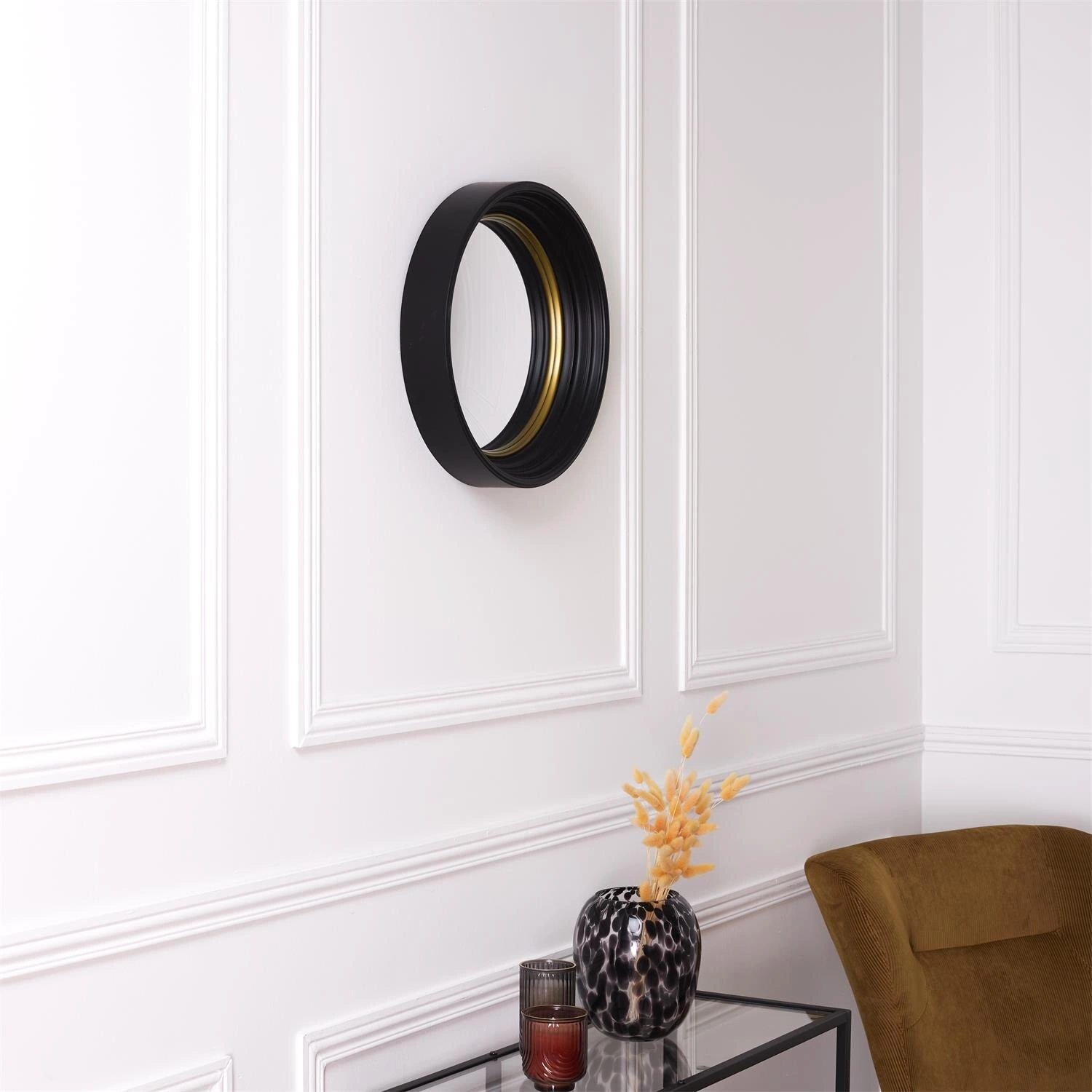 Lustro powiększające Oko okrągłe czarne marki Intesi to nowoczesny akcent do wnętrz w stylu loftowym, który łączy w sobie funkcjonalność i wyrazisty design. Okrągła tafla o średnicy 40 cm, zamknięta w solidnej metalowej ramie w kolorze czarnym, tworzy efektowny detal na ścianie przedpokoju lub sypialni. Wypukłe szkło powiększające nie tylko przyciąga wzrok, ale też pozwala na wygodne poprawki makijażu czy stylizacji – idealnie sprawdzi się jako lustro do przedpokoju lub do sypialni nad toaletką.