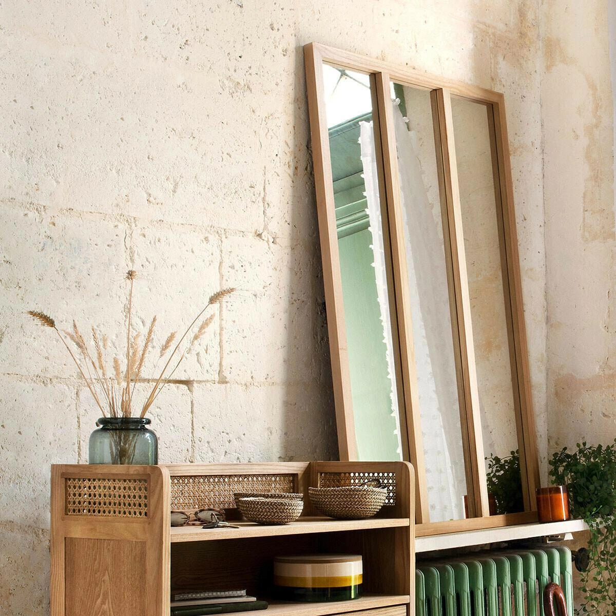 Lustro prostokątne Nae 76x116 cm marki Atmosphera to efektowny akcent ścienny, który harmonijnie łączy naturalny materiał z ponadczasowym designem. Solidna rama z drewna podkreśla orientalny charakter i wprowadza do wnętrza ciepło oraz przytulność. Przemyślane wymiary – wysokość 116 cm i szerokość 76 cm – sprawiają, że lustro idealnie sprawdza się jako lustro do łazienki, lustro do przedpokoju lub elegancka dekoracja do sypialni. Model przeznaczony jest do zawieszenia na ścianie, co ułatwia aranżację przestrzeni nawet w niewielkich pomieszczeniach.