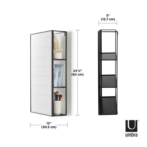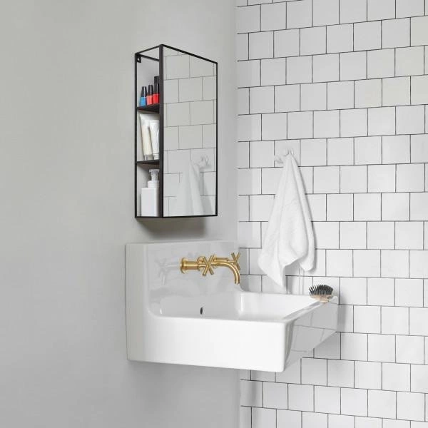 Nowoczesne podejście do tradycyjnej apteczki, Cubiko to lustro i szafka zaprojektowana tak, aby maksymalnie wykorzystać małą przestrzeń. Za lustrem Cubiko schowane są wygodne półki do przechowywania, które są łatwo dostępne z każdej otwartej strony; oszczędzając Ci kłopotów z drzwiami, tak jak w przypadku konwencjonalnej apteczki łazienkowej z lustrem. Doskonały dodatek do każdego pomieszczenia, w którym brakuje miejsca do przechowywania. Cubiko jest wykonane z nierdzewnej stali malowanej proszkowo, dzięki czemu idealnie nadaje się do łazienek lub innych obszarów o dużym natężeniu ruchu w domu. Maksymalne obciążenie całego lustra to 18 kg
