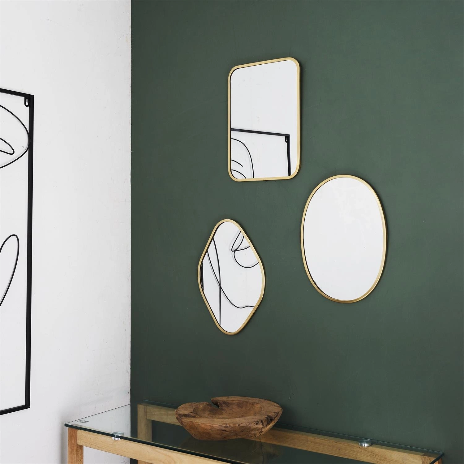 Lustra Arcilla w złotej ramie to szybki sposób na nadanie wnętrzu ekskluzywnego charakteru. Ich połyskujące wykończenie i szlachetny kolor podkreślają elegancję przestrzeni, sprawiając, że nawet niewielki przedpokój czy strefa wypoczynkowa zyskuje efektowny, dekoracyjny akcent. Zestawienie trzech różnych kształtów lustra na ścianę pozwala tworzyć oryginalne kompozycje – ułóż je obok siebie lub rozmieść w różnych częściach pomieszczenia, by uzyskać spójną, a zarazem intrygującą ozdobę.