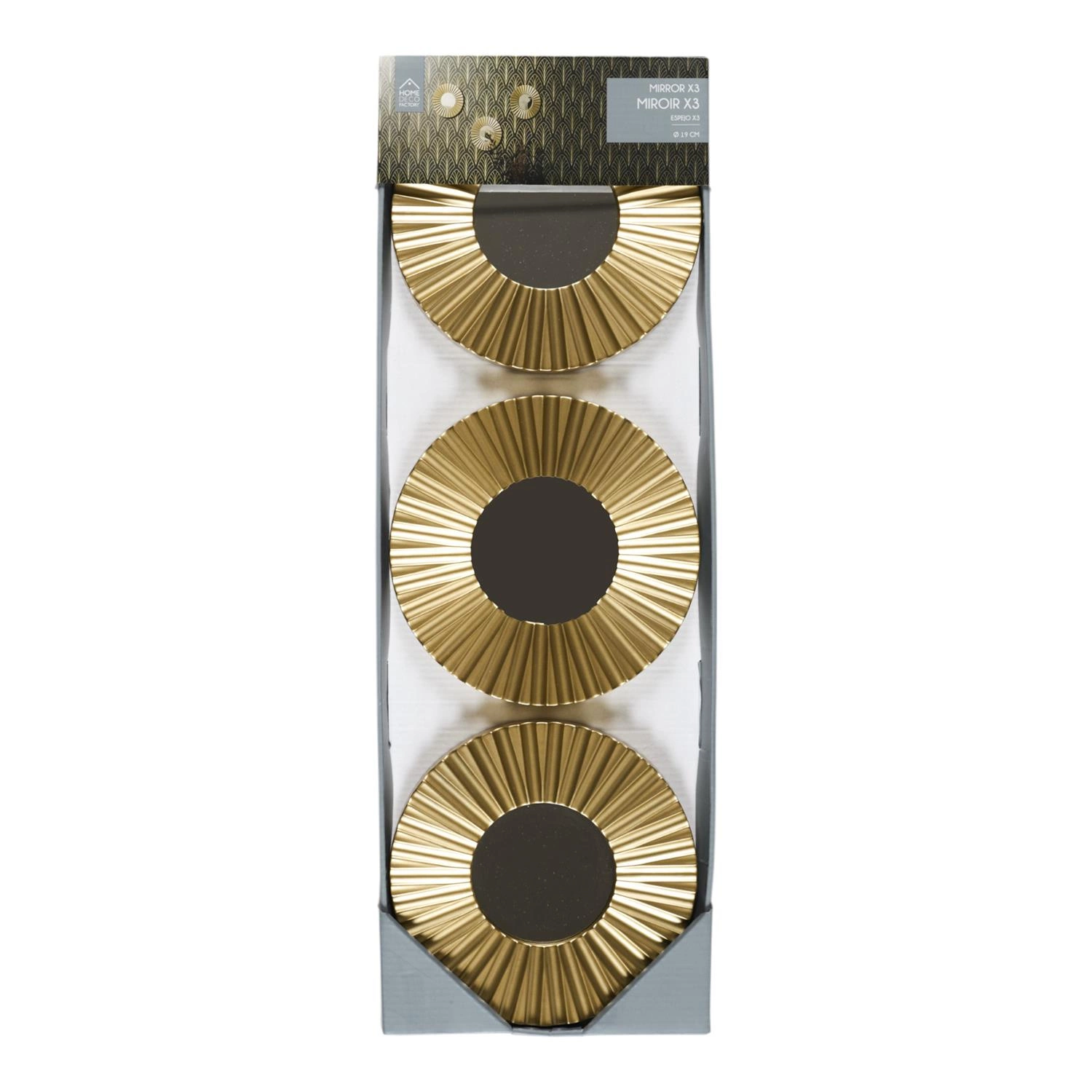 Zestaw 3 okrągłych luster dekoracyjnych Origami marki Intesi to elegancka propozycja, która łączy niezwykły design z uniwersalnością zastosowania. Każde lustro mierzy 19 cm średnicy i oprawione jest w precyzyjnie wykonaną ramę w kolorze złotym. Zestaw wyróżnia się dekoracyjnym charakterem oraz lekkością, dzięki zastosowaniu szkła i tworzywa sztucznego. Idealnie sprawdzi się jako lustro do przedpokoju, salonu czy sypialni, skutecznie rozświetlając przestrzeń i nadając jej wyjątkowego wyrazu.