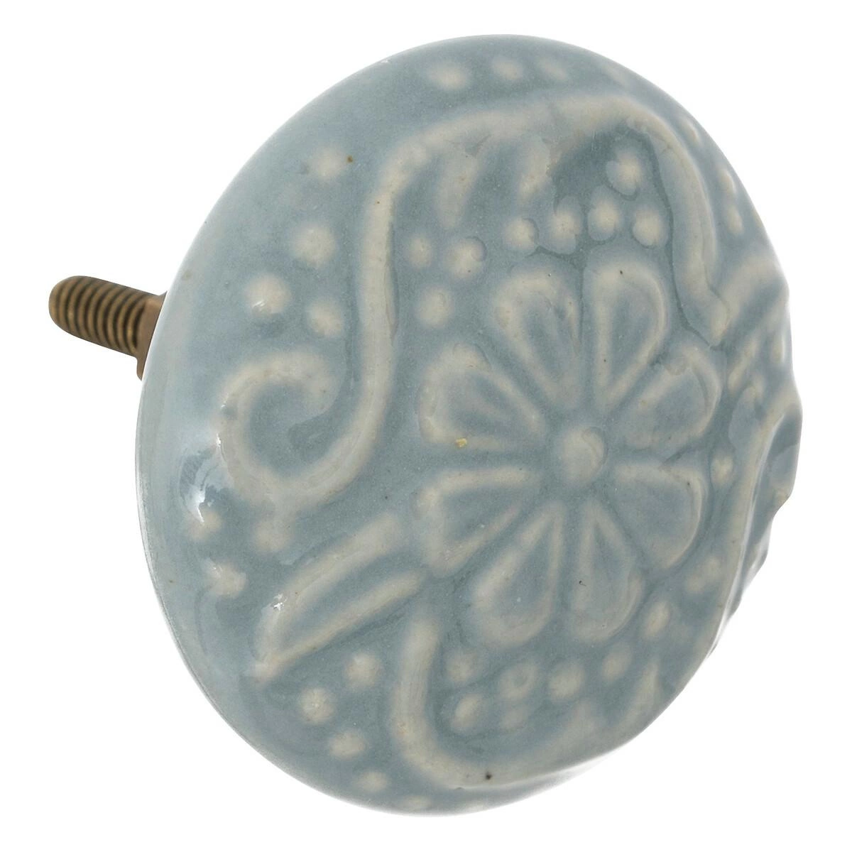 Zestaw zawiera 2 uchwyty/ gałki dekoracyjne wykonane z metalu oraz kamionki. Dzięki zdecydowanie nowoczesnemu stylowi, ten zestaw 2 gałek meblowych Aniya nada drzwiczkom szuflad lub szafek oryginalnego charakteru! Wykonany z kolorowej, szkliwionej kamionki zestaw gałek meblowych "Aniya" składa się z 2 elementów, których kwiatowe motywy dodadzą bukolicznego charakteru Twojemu wystrojowi! Możesz użyć ich na odnawianym meblu lub spersonalizować kredens czy szuflady. Produkt znacząco podkreśli urodę toaletki, komody bądź szafy. Łatwy montaż i komfortowe użytkowanie! Dopasuj zestaw 2 gałek meblowych Aniya do kredensu z drewna Atmosphera i ciesz się egzotycznym zestawem!