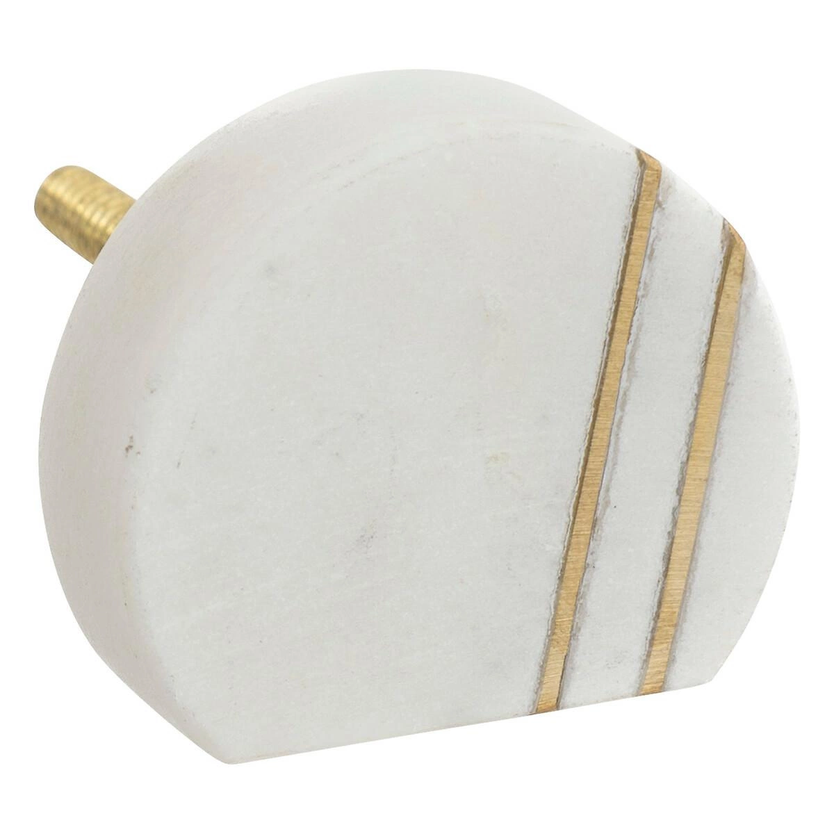 Zestaw zawiera 2 uchwyty/ gałki dekoracyjne wykonane z mosiądzu oraz kamienia. Dzięki zdecydowanie nowoczesnemu stylowi, ten zestaw 2 gałek meblowych nada drzwiczkom szuflad lub szafek oryginalnego charakteru! Wyrafinowane gałki pasują do większości mebli dzięki standardowemu rozmiarowi śrub. Gałki mają oryginalny krój i świetnie wyglądają z drewnianymi meblami, tworząc cenny akcent. Produkt znacząco podkreśli urodę toaletki, komody bądź szafy. Łatwy montaż i komfortowe użytkowanie! Dopasuj zestaw 2 gałek meblowych Maeva do kredensu z drewna Atmosphera i ciesz się egzotycznym zestawem!