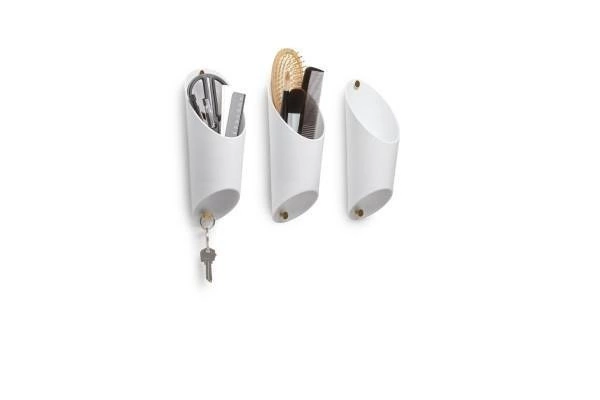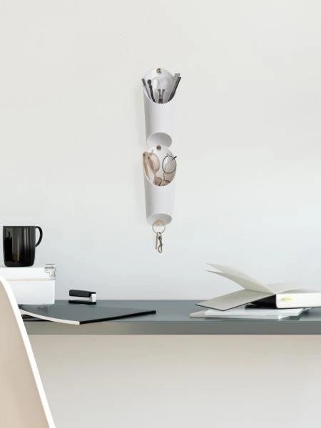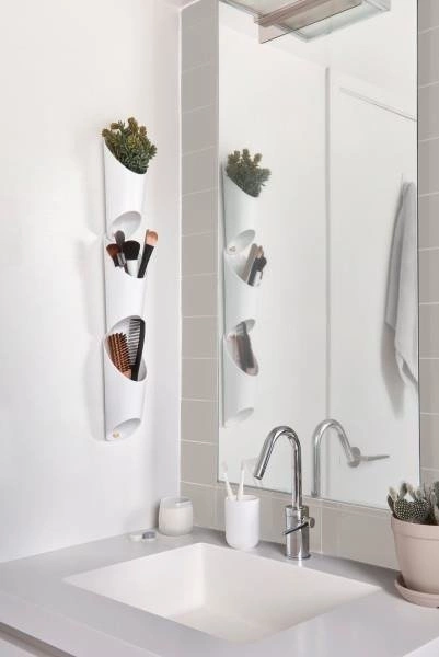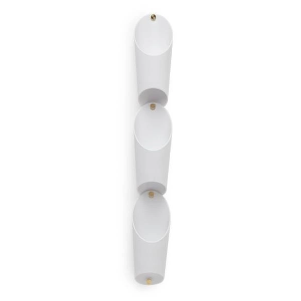 Dlaczego warto mieć rośliny w domu? Odpowiedź jest prosta, to nie tylko kwestia wyjątkowej estetyki, ale również zdrowotna korzyść, która pozwoli nam podnieść wilgotność powietrza. Stwórz zieloną ścianę w swojej przestrzeni domowej, dzięki oryginalnemu zestawowi Floralink. To połączenie trzech naczyń ściennych wykonanych z wytrzymałego tworzywa w kolorze białym wzbogacony mosiężnym elementem. Zestaw można w dowolny sposób łączyć ze sobą, tworząc ciekawe kombinacje. Jeśli połączymy kilka zestawów, będziemy w stanie stworzyć ciekawe aranżacje. Te ładnie uformowane naczynia o opływowym kształcie mogą być używane do przechowywania innych przedmiotów, na przykład artykułów biurowych, dzięki czemu stanowią kompaktowe miejsce na różne drobnostki w każdym pomieszczeniu.