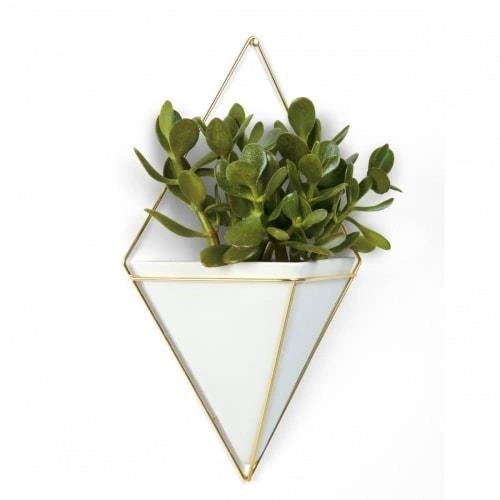 Doniczka ścienna Trigg Umbra w kolorze biało-złotym to nie tylko funkcjonalna doniczka na zioła, ale również efektowny element dekoracyjny, który odmieni każdą ścianę. Postaw na oryginalność, wybierając geometryczną doniczkę ceramiczną, która łączy nowoczesny styl z praktycznym zastosowaniem i pozwala wprowadzić zieleń nawet do niewielkich wnętrz. Zaproś do swojego domu świeżość i designerski akcent, który zwraca uwagę i inspiruje do twórczych aranżacji.