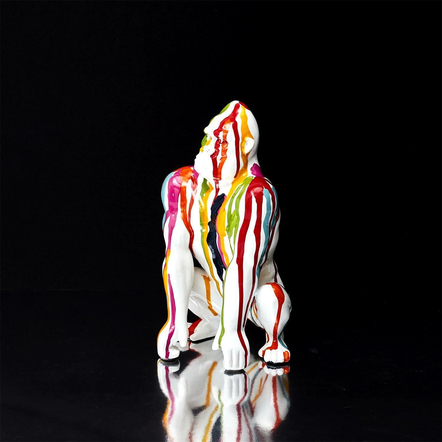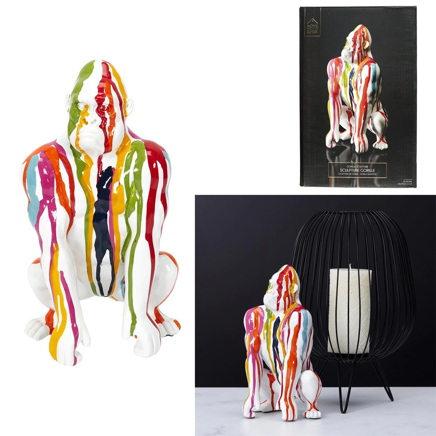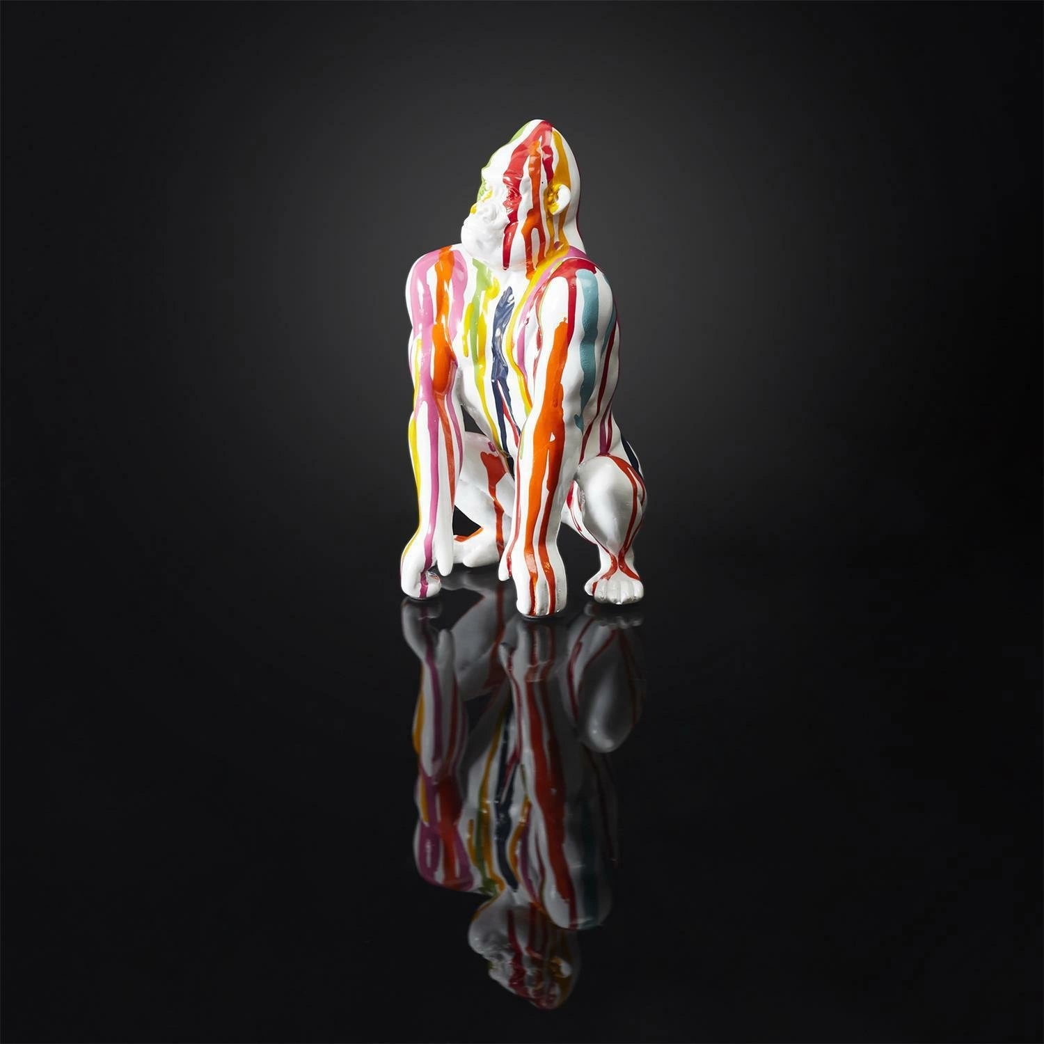 Dekoracja goryl to nietypowy dodatek, który skradnie serca miłośników zwierząt, niekoniecznie tylko tych domowych. Odrobina egzotyki zamknięta w przykuwającej uwagę figurce goryla, ozdobi naszą konsolę, komodę lub półkę. Figurka została wykonana z tworzywa wykończonego w połysku. Dekoracja dostępna jest w kilku modnych kolorach, które mogą stworzyć zjawiskowy zestaw. Jest to figurka obok, której nie da się przejść obojętnie. Figurka doskonale uzupełni wnętrza w stylu nowoczesnym, eklektycznym czy skandynawskim.