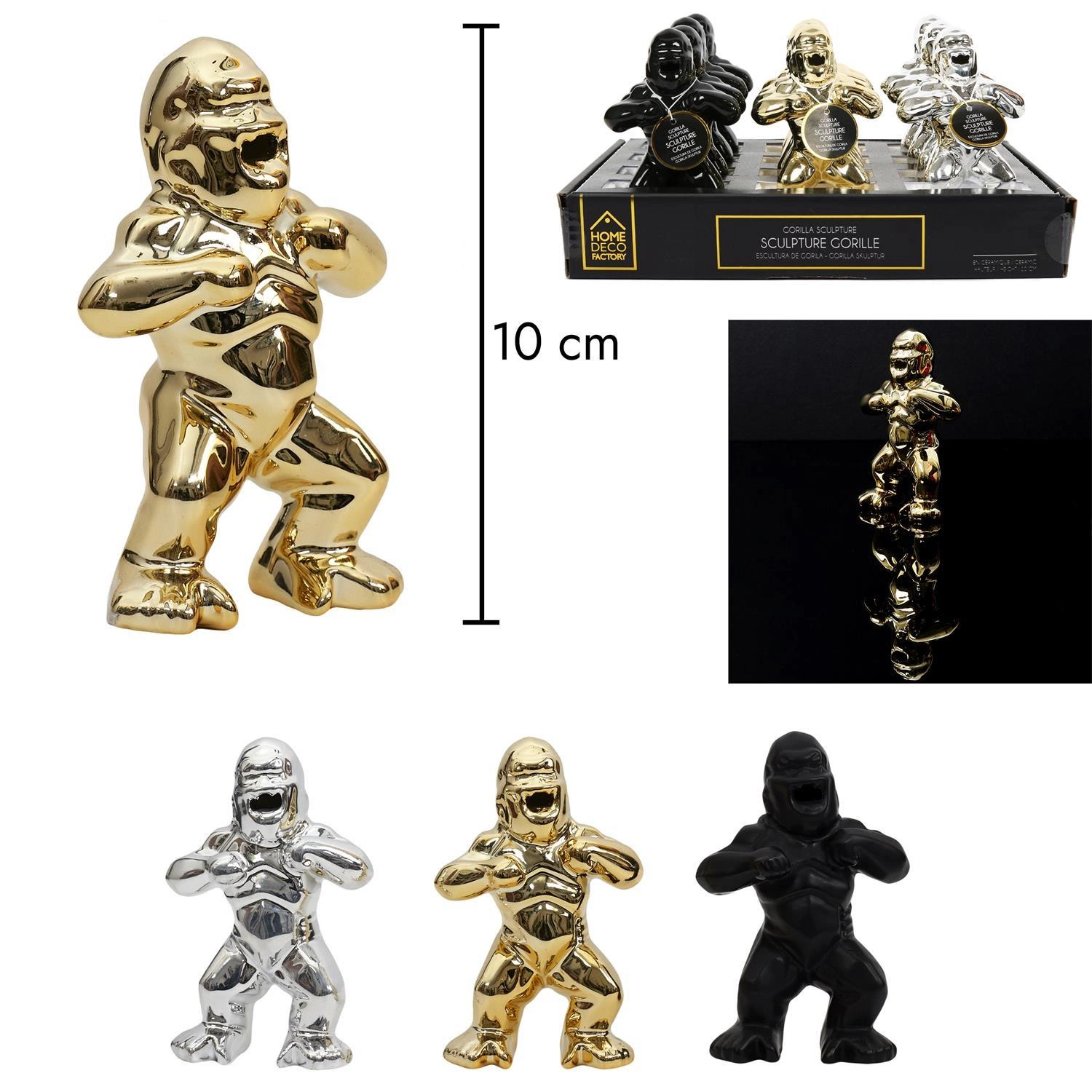 Dekoracja goryl to nietypowy dodatek, który skradnie serca miłośników zwierząt, niekoniecznie tylko tych domowych. Odrobina egzotyki zamknięta w przykuwającej uwagę figurce goryla, ozdobi naszą konsolę, komodę lub półkę. Figurka została wykonana z tworzywa wykończonego w połysku. Dekoracja dostępna jest w trzech modnych kolorach, które mogą stworzyć zjawiskowy zestaw. Jest to figurka obok, której nie da się przejść obojętnie.