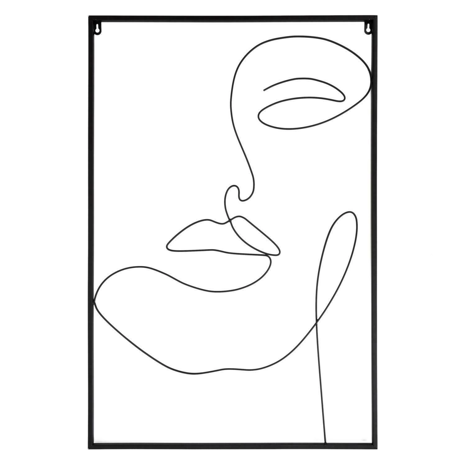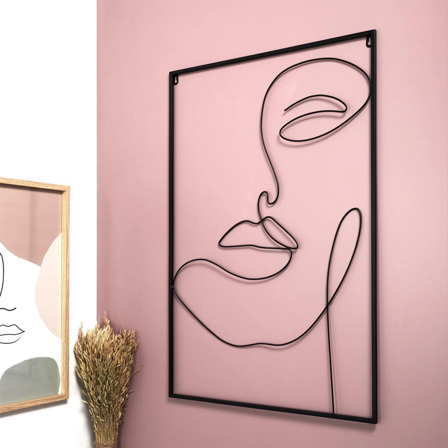 Metalowy obraz to inspirująca ozdoba do wnętrz loftowych. Czarny wygięty metal tworzy ciekawy kształt ludzkiej twarzy. Motyw obrazu nawiązuje do bestselerowej kolekcji Arty. Kolekcja ta charakteryzuje się prostą nienachalną grafiką.