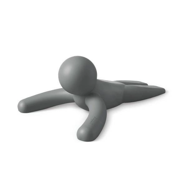 Szary stoper drzwiowy Buddy Umbra, inspirowany współczesnym designem, wyróżnia się niebanalną formą i subtelnym kolorem, który doskonale wpisuje się w nowoczesne aranżacje wnętrz. Gumowy materiał nie tylko zapewnia trwałość, ale także gwarantuje bezpieczeństwo użytkowania – nie ślizga się po podłodze i nie powoduje uszkodzeń paneli, parkietu czy płytek. Oryginalna sylwetka stopera jest nie tylko praktyczna, ale również stanowi ciekawy element dekoracyjny, który może wywołać uśmiech zarówno u domowników, jak i gości.