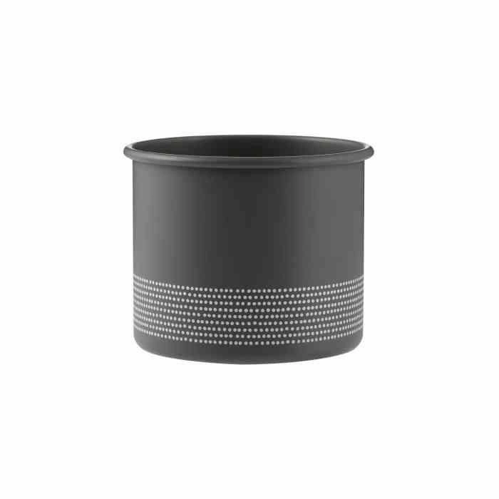 Chroń swoje zioła w dobrym stylu dzięki stylowej osłonie na doniczkę. Atrakcyjna ciemnoszara osłona wykonana jest z malowanej stali i posiada ozdobny print w dolnej części. Mycie jest banalnie proste - pojemnik należy czyścić ręcznie. Wystarczy przetrzeć go wilgotną szmatką, aby odzyskał swój blask.