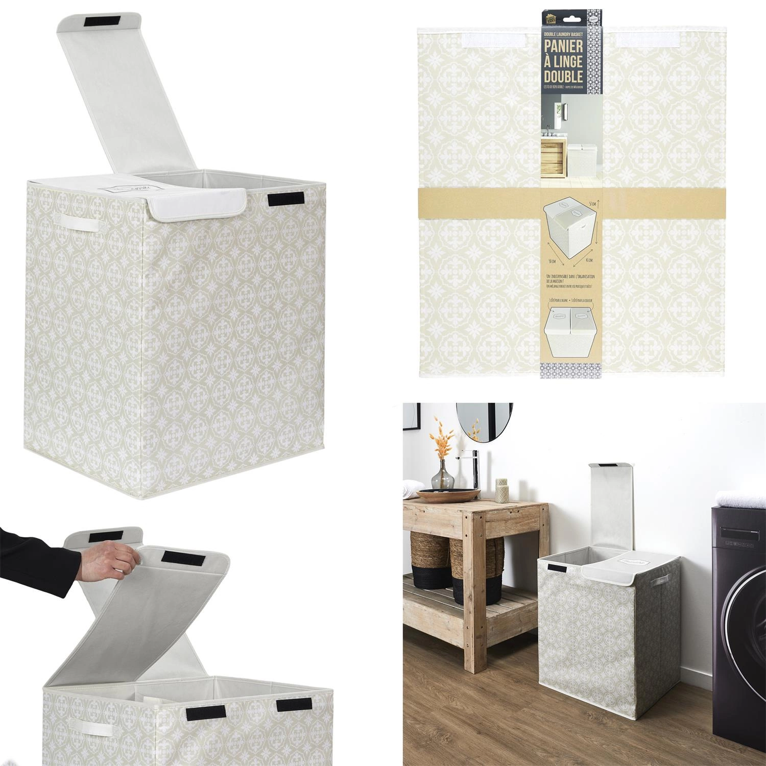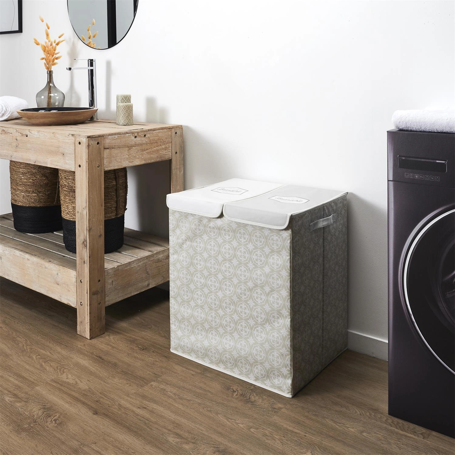 Kosz na pranie podwójny 50x41x57 szary tkanina - elegancja i funkcjonalność