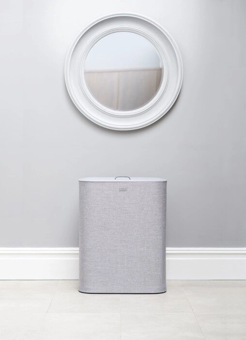 Kosz na pranie JJ-Kosz na pranie 90l. Tota szary jest wykonany z tworzywa sztucznego i bawełny, co gwarantuje jego trwałość i łatwość utrzymania w czystości. Wszystkie elementy plastikowe, jak pokrywa, obręcze i rama oraz zewnętrzna tkanina poliestrowa, można łatwo przetrzeć wilgotną ściereczką. Bawełniane worki do przechowywania prania można prać w pralce, co czyni ten kosz na pranie niezwykle higienicznym rozwiązaniem.