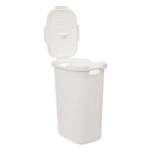 Kosz na pranie 60 l rattan syntetyczny biały - idealny do wilgotnych pomieszczeń