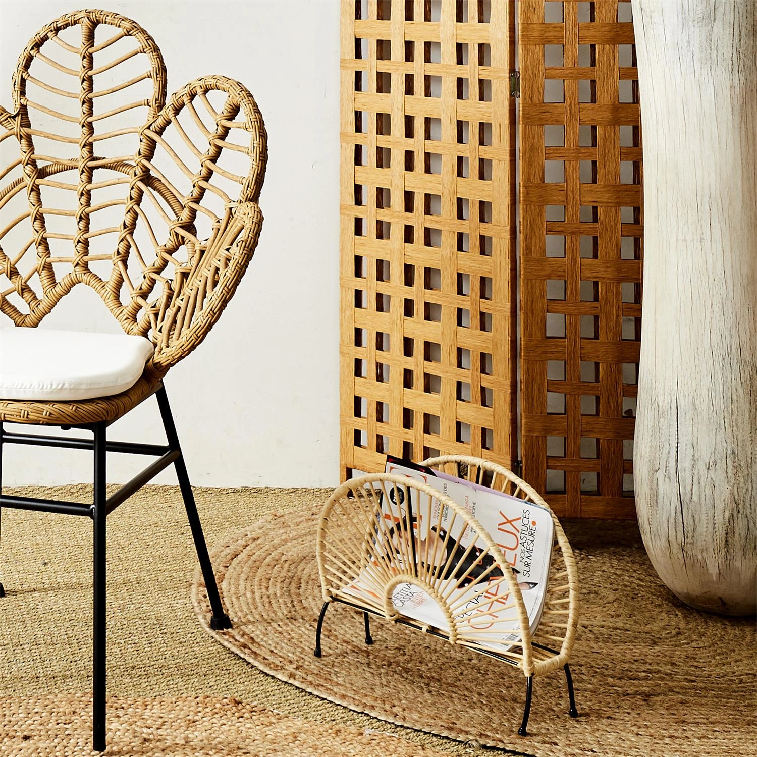Wykonany z materiałów imitujących rattan, gazetnik Fogler jest nie tylko stylowy, ale również łatwy w utrzymaniu. Regularne odkurzanie i unikanie długotrwałego wystawiania na działanie słońca pozwoli cieszyć się jego estetyką przez długi czas. To idealny wybór dla tych, którzy poszukują praktycznego rozwiązania do organizacji przestrzeni, które jednocześnie doda eleganckiego charakteru ich wnętrzom.