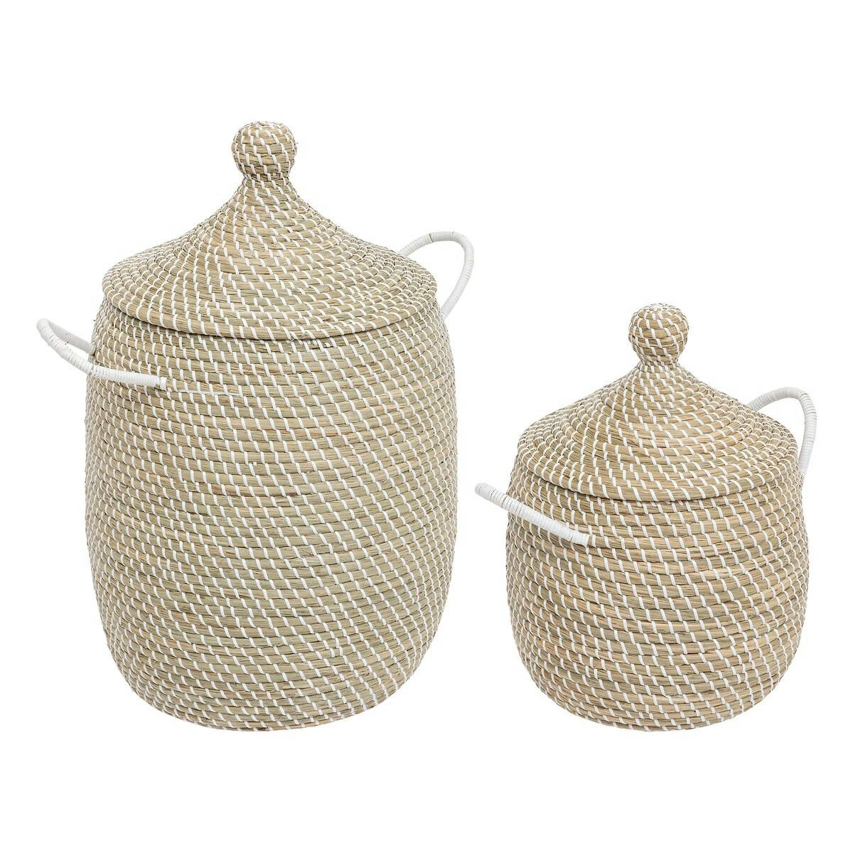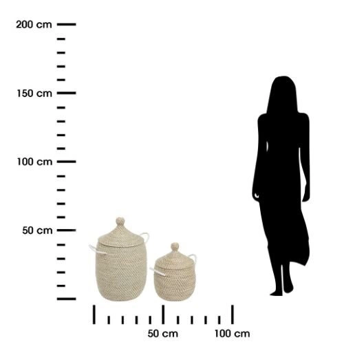 Zestaw 2 boho koszy do przechowywania Soleya marki Atmosphera to praktyczne i stylowe rozwiązanie dla osób ceniących naturalny design i funkcjonalność. Wykonane z plecionej słomy, kosze w kolorze naturalnym i białym sprawdzą się zarówno jako kosz na zabawki, jak i pojemnik na ubrania czy akcesoria. W zestawie znajdują się dwa rozmiary: większy o wysokości 58 cm i szerokości 39 cm oraz mniejszy – 40 cm wysokości i 30 cm szerokości, oba wyposażone w dopasowane pokrywki.