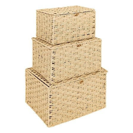 Zestaw 3 skrzynek Elio naturalny - praktyczne i stylowe rozwiązanie do przechowywania