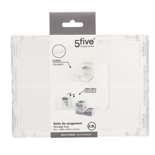 Transparentny pojemnik Fold`n Box marki 5five simply smart to połączenie funkcjonalności i stylu. Jego nowoczesny design sprawia, że idealnie wpasuje się w każde wnętrze, niezależnie od jego stylu. Pojemnik doskonale sprawdzi się zarówno w garderobie, jak i w pokoju dziecięcym, młodzieżowym, salonie czy sypialni. Dzięki temu, że jest składany, można go łatwo przechowywać, gdy nie jest potrzebny. Transparentny kolor pozwala na szybkie zidentyfikowanie zawartości, co jest niezwykle praktyczne, szczególnie w przypadku przechowywania małych przedmiotów.