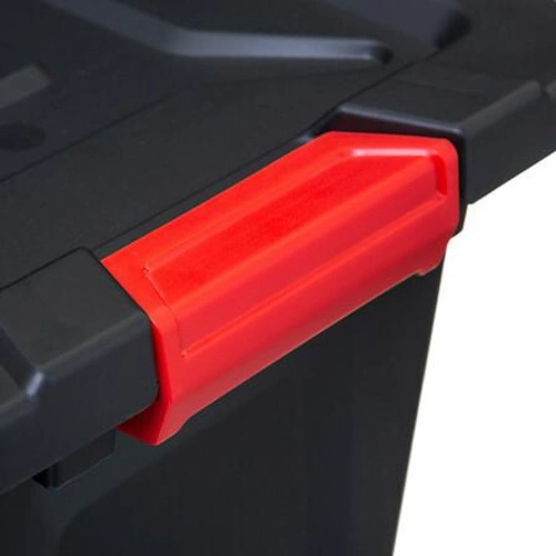 Chcesz utrzymać porządek w swoim garażu lub warsztacie? Pojemnik Store n`Lock o pojemności 30 litrów będzie doskonałym rozwiązaniem. Wykonany z wysokiej jakości tworzywa sztucznego, zapewni długotrwałe i bezpieczne przechowywanie wszystkich Twoich rzeczy. Jego czarny kolor i czerwone zatrzaski dodadzą elegancji każdemu pomieszczeniu, jednocześnie ułatwiając segregację przedmiotów.