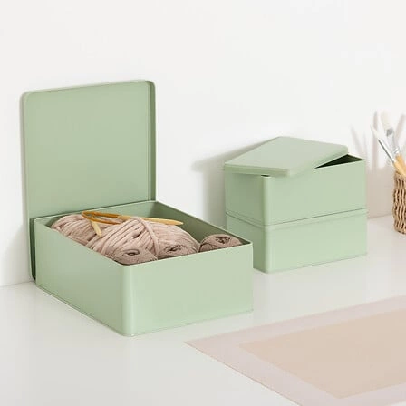 Zestaw 3 pudełek wykonanych z metalu to idealne akcesoria o przechowywania drbnych przdmiotów zarówno na biurku jaki w szufladzie lub na półce. Zestaw składa się z 3 pudełek jedno L: 31 x 23 x 11 cm oraz dwa w rozmiarze S: 20,5 x 13,5 x 8,5 cm