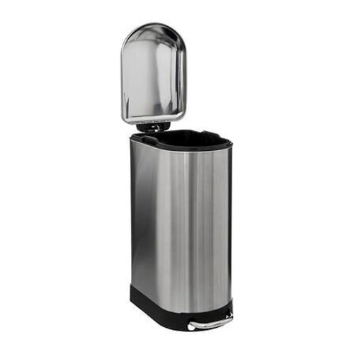 Ariane Slim 30l marki 5five to nowoczesny, metalowy kosz na śmieci przeznaczony do kuchni. Jego smukła forma (wysokość 62,6 cm, szerokość 25 cm, głębokość 42,5 cm) pozwala ustawić go nawet w niewielkiej przestrzeni, a pojemność 30 litrów sprawia, że doskonale sprawdzi się w codziennym użytkowaniu. Wykonany z wytrzymałego metalu w eleganckim srebrnym kolorze, wyposażony został w praktyczny pedał umożliwiający higieniczne otwieranie bez dotykania pokrywy.