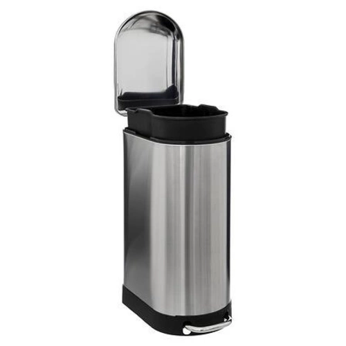 Wyposażenie kosza w otwieranie na pedał gwarantuje pełną wygodę i higienę – wyrzucisz odpady bez konieczności dotykania pokrywy, co jest szczególnie ważne podczas gotowania. Wyjmowany wkład ułatwia opróżnianie i utrzymanie czystości, dzięki czemu codzienne korzystanie z kosza staje się szybkie i bezproblemowe. Metalowa konstrukcja zapewnia trwałość na lata, a łatwa do czyszczenia powierzchnia upraszcza pielęgnację produktu.