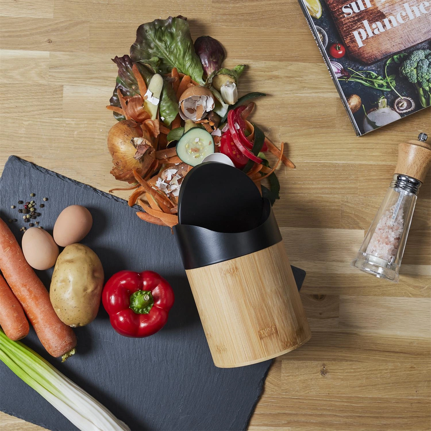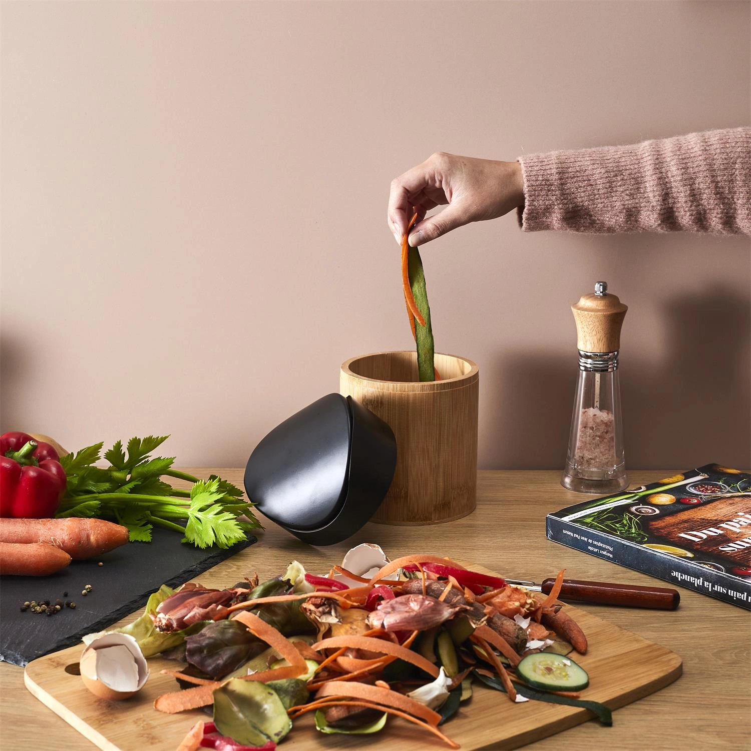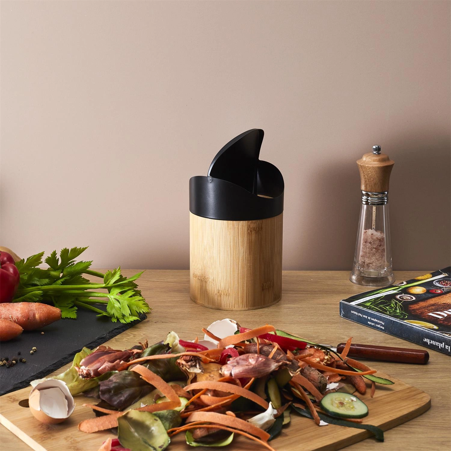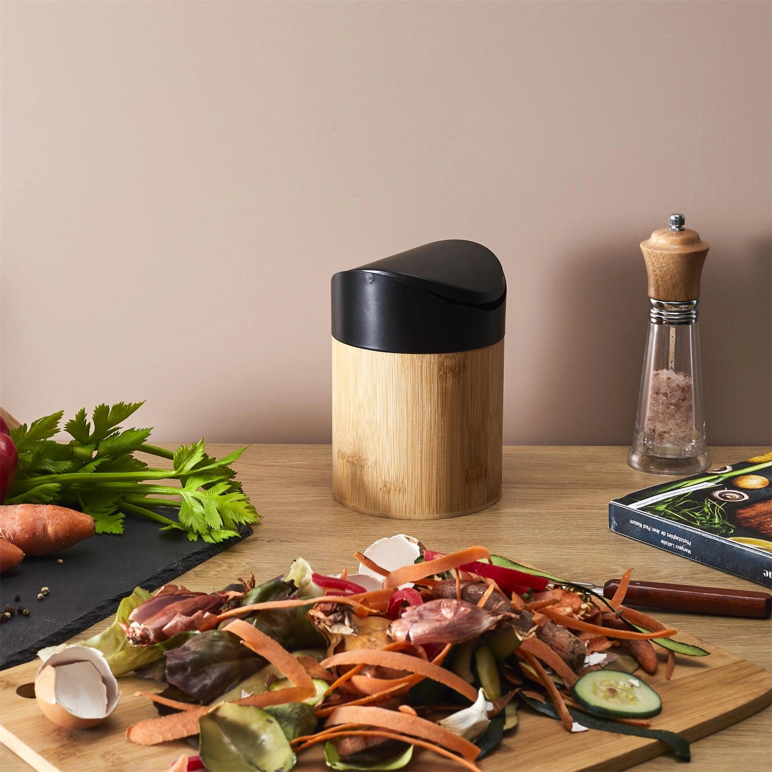 - Kompaktowa pojemność 1 litra – idealny pojemnik na bioodpady lub drobne śmieci, oszczędza miejsce i zapobiega gromadzeniu dużych ilości odpadów.