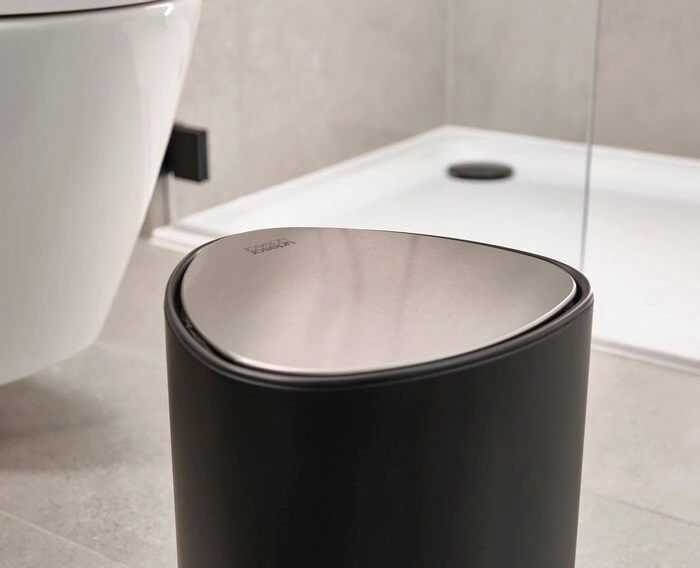 Minimalistyczny, czarny matowy kosz łazienkowy Joseph Joseph EasyStore doskonale wpisuje się w aktualne trendy wnętrzarskie. Subtelne chromowane akcenty i owalny kształt sprawiają, że pojemnik na śmieci prezentuje się elegancko w każdej aranżacji – od nowoczesnych po bardziej klasyczne łazienki. Jego uniwersalny rozmiar (wysokość 30,8 cm, szerokość 22 cm, głębokość 25,5 cm) pozwala ustawić go zarówno przy umywalce, jak i w kącie – tam, gdzie naprawdę go potrzebujesz.