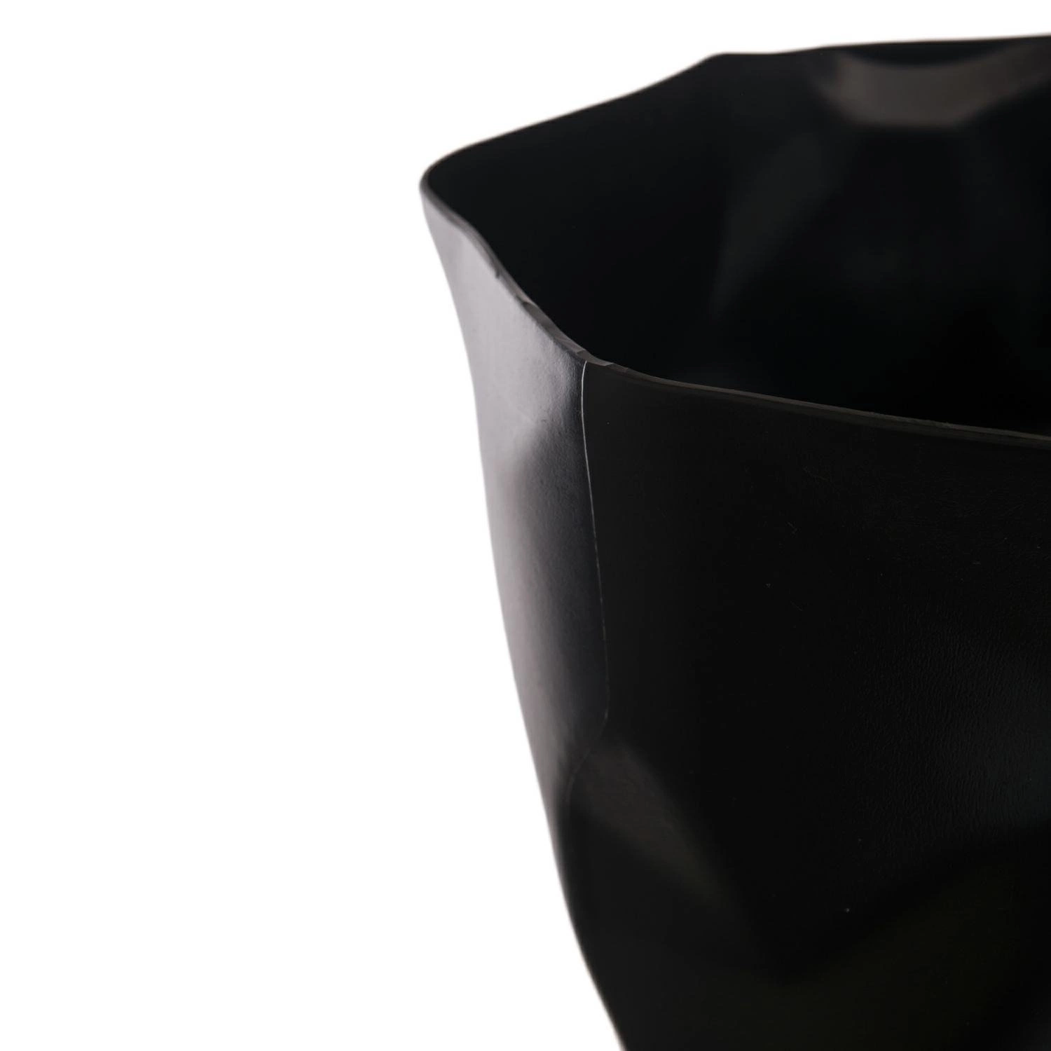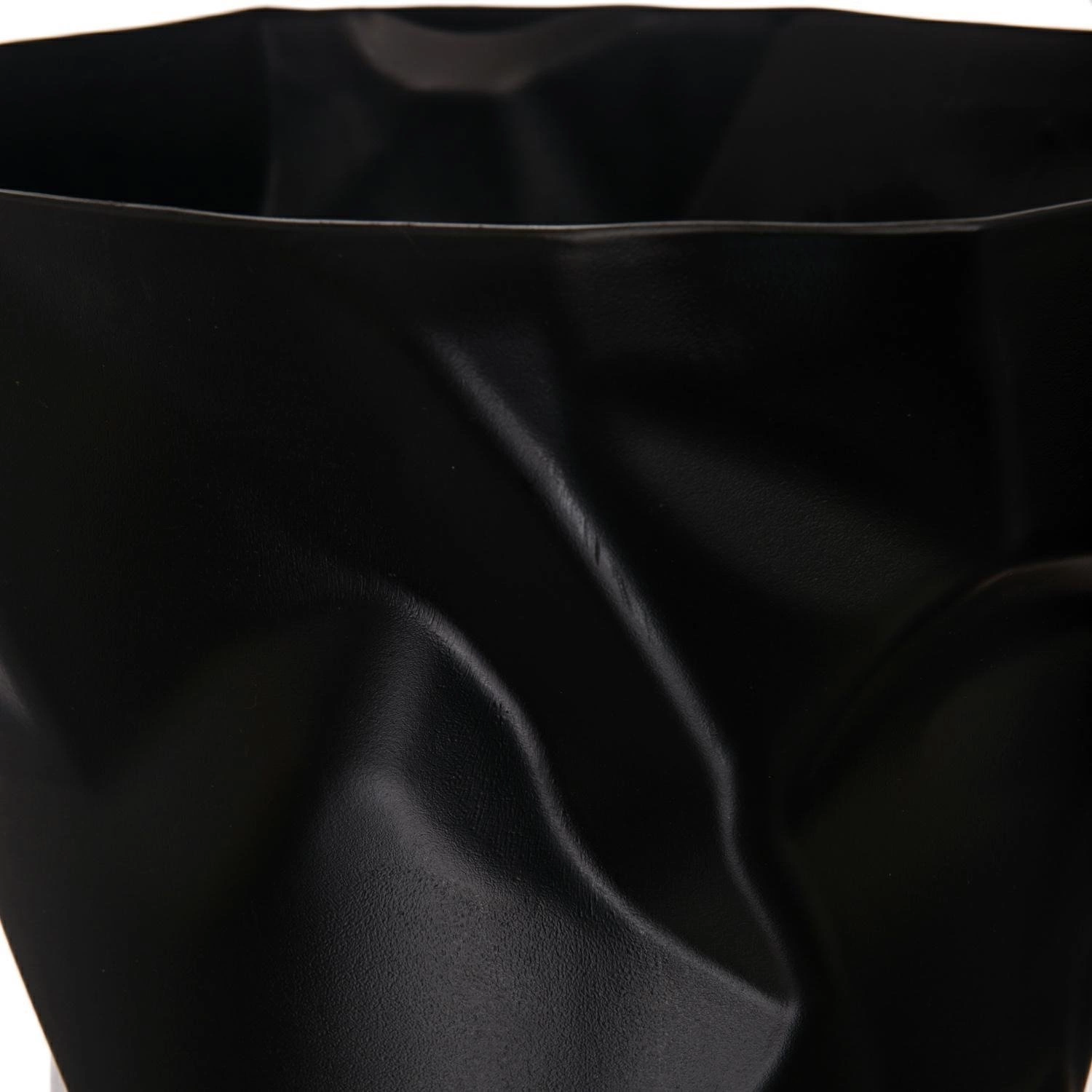 Kosz biurowy na papier D2.DESIGN Papier to designerski pojemnik o czarnej, matowej powierzchni i pojemności 5 litrów. Wykonany z trwałego tworzywa, wyróżnia się oryginalną formą inspirowaną zgniecioną kartką papieru. Dzięki kompaktowym wymiarom – 31 cm wysokości i szerokości – idealnie sprawdzi się w domowym gabinecie, nowoczesnym biurze czy pracowni kreatywnej.