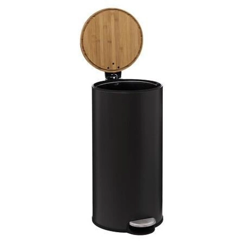 Kosz na śmieci Bam od 5five Simply Smart to idealny kosz na śmieci dla Twojego domu. Kosz o pojemności 30 litrów, wykonany z metalowej obudowy, bambusowej pokrywy i polipropylenowego wkładu na śmieci, posiada również pedał nożny do otwierania bez dotykania rękami.