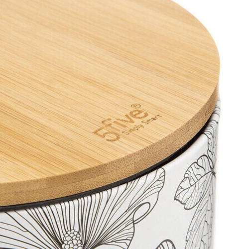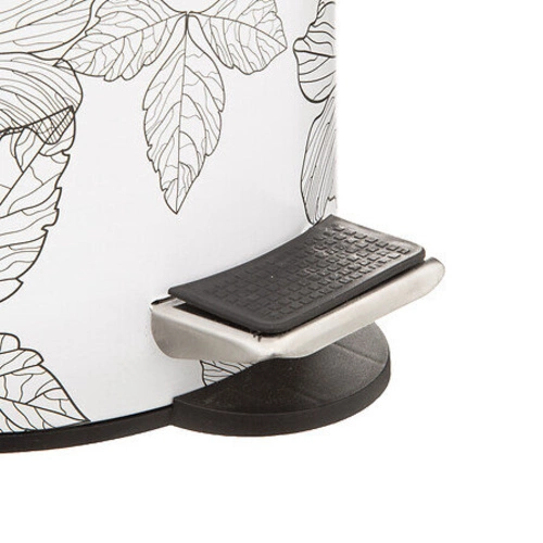 Kosz na śmieci do łazienki BlackFlora marki 5five simply smart to nowoczesny pojemnik o pojemności 3 litrów, który łączy biało-czarną estetykę, trwałość metalu i wygodę użytkowania. Został wyposażony w praktyczny pedał oraz mechanizm Soft Close, dzięki czemu zamyka się cicho i płynnie. Okrągła forma, florystyczny motyw oraz akcent z naturalnego drewna bambusowego podkreślają elegancję i wysoką funkcjonalność – idealny do każdej łazienki, nawet tej o niewielkiej powierzchni.