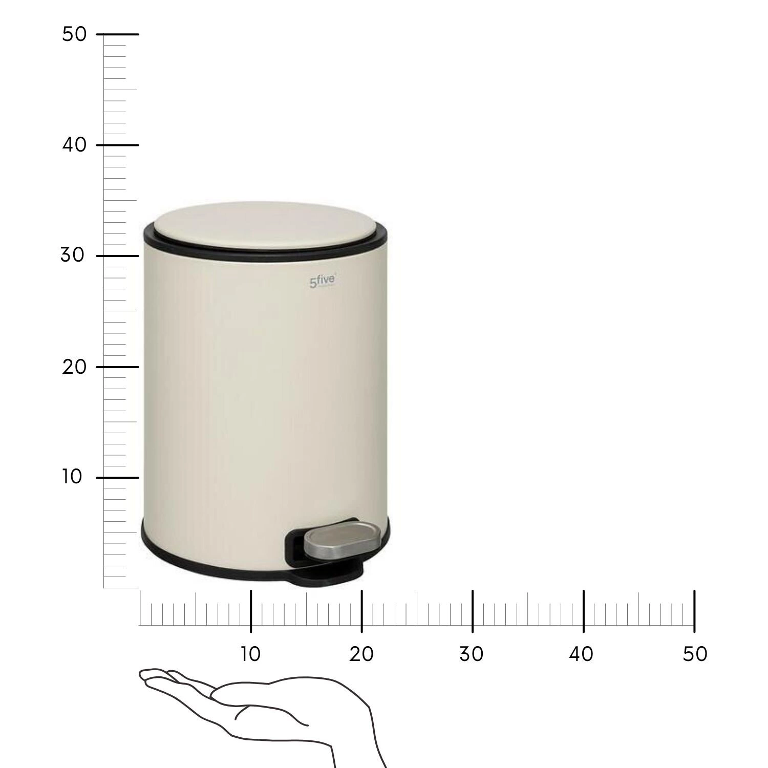 Kosz na śmieci do łazienki Delta marki 5five simply smart to połączenie nowoczesnego wzornictwa z funkcjonalnością, która doskonale odnajdzie się w każdej łazience. Beżowy pojemnik o pojemności 6 litrów został wykonany z trwałej stali i wytrzymałego tworzywa, dzięki czemu zachowuje estetyczny wygląd na lata. Kompaktowe wymiary (wysokość 30 cm, szerokość 26,5 cm, głębokość 21,5 cm) sprawiają, że kosz idealnie pasuje nawet do niewielkich przestrzeni, a matowe wykończenie podkreśla jego minimalistyczny, skandynawski styl.