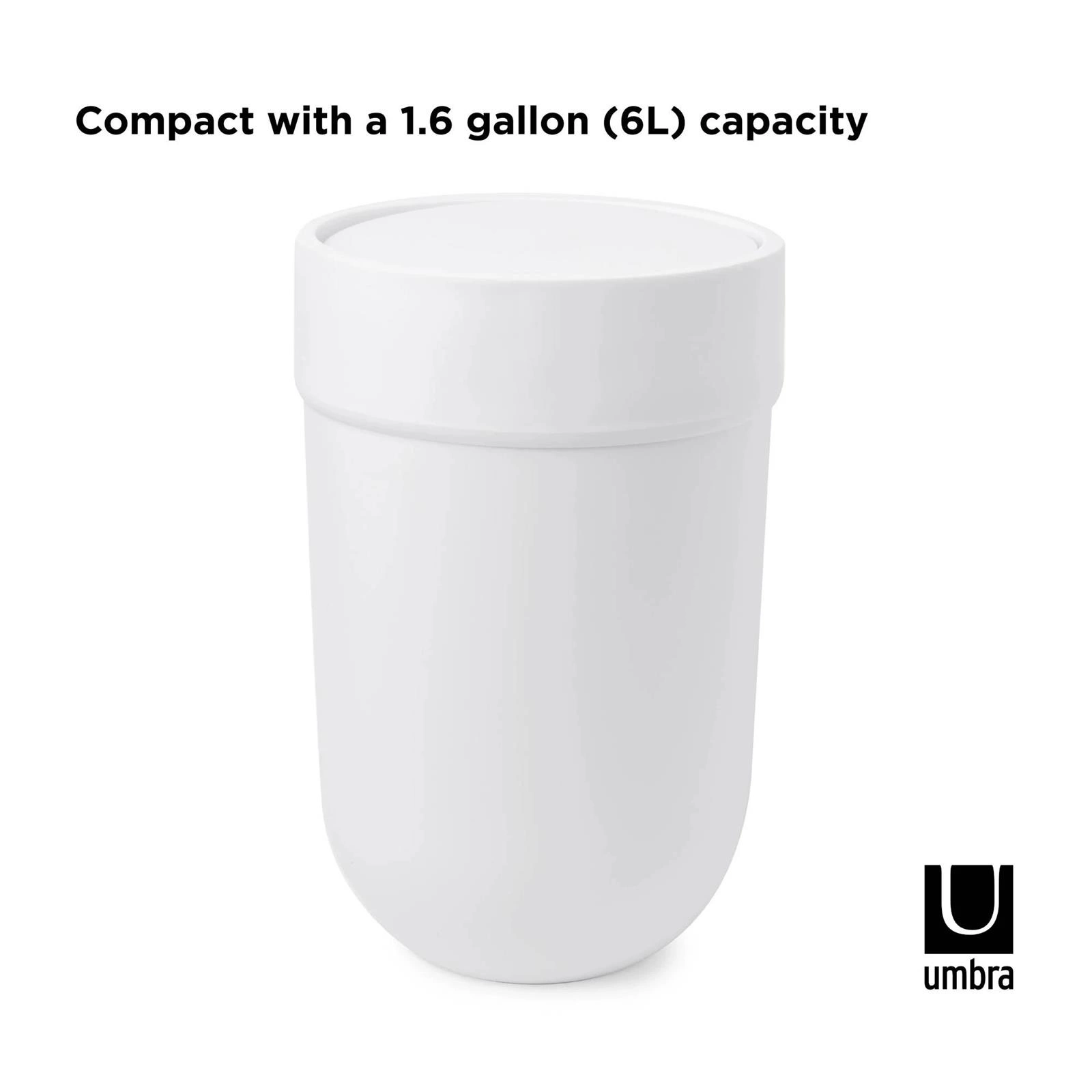 Kosz na śmieci do łazienki Umbra Touch biały to propozycja dla osób ceniących estetykę i nowoczesny design w codziennych akcesoriach. Dzięki kompaktowym wymiarom – wysokość 30 cm, szerokość i głębokość po 19 cm – idealnie sprawdzi się w łazience, zapewniając dyskretne miejsce na odpady. Wykonany z trwałego tworzywa sztucznego, wyposażony w praktyczną pokrywę i o pojemności 6 litrów, łączy funkcjonalność z eleganckim, matowym wykończeniem.