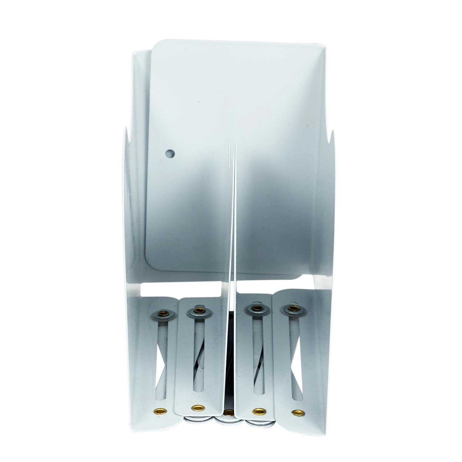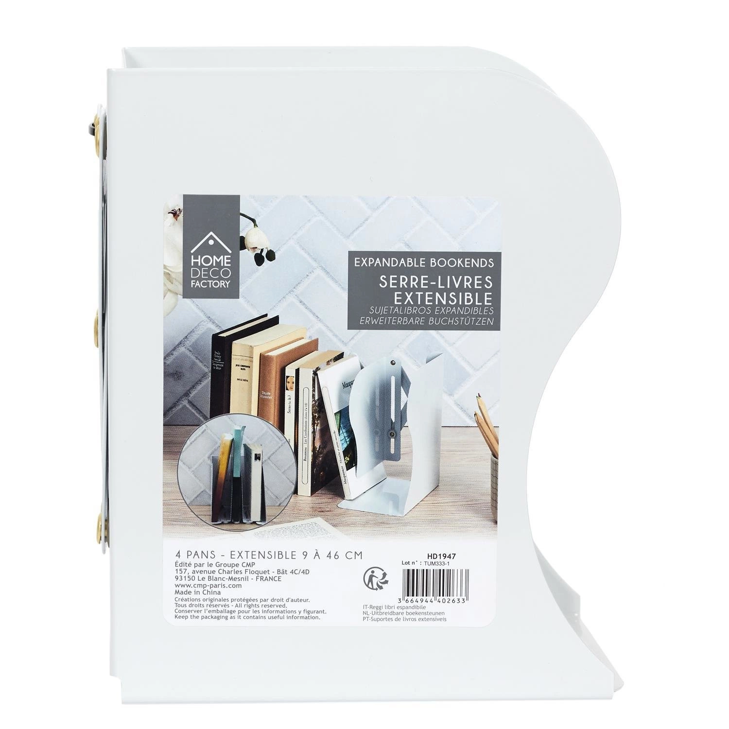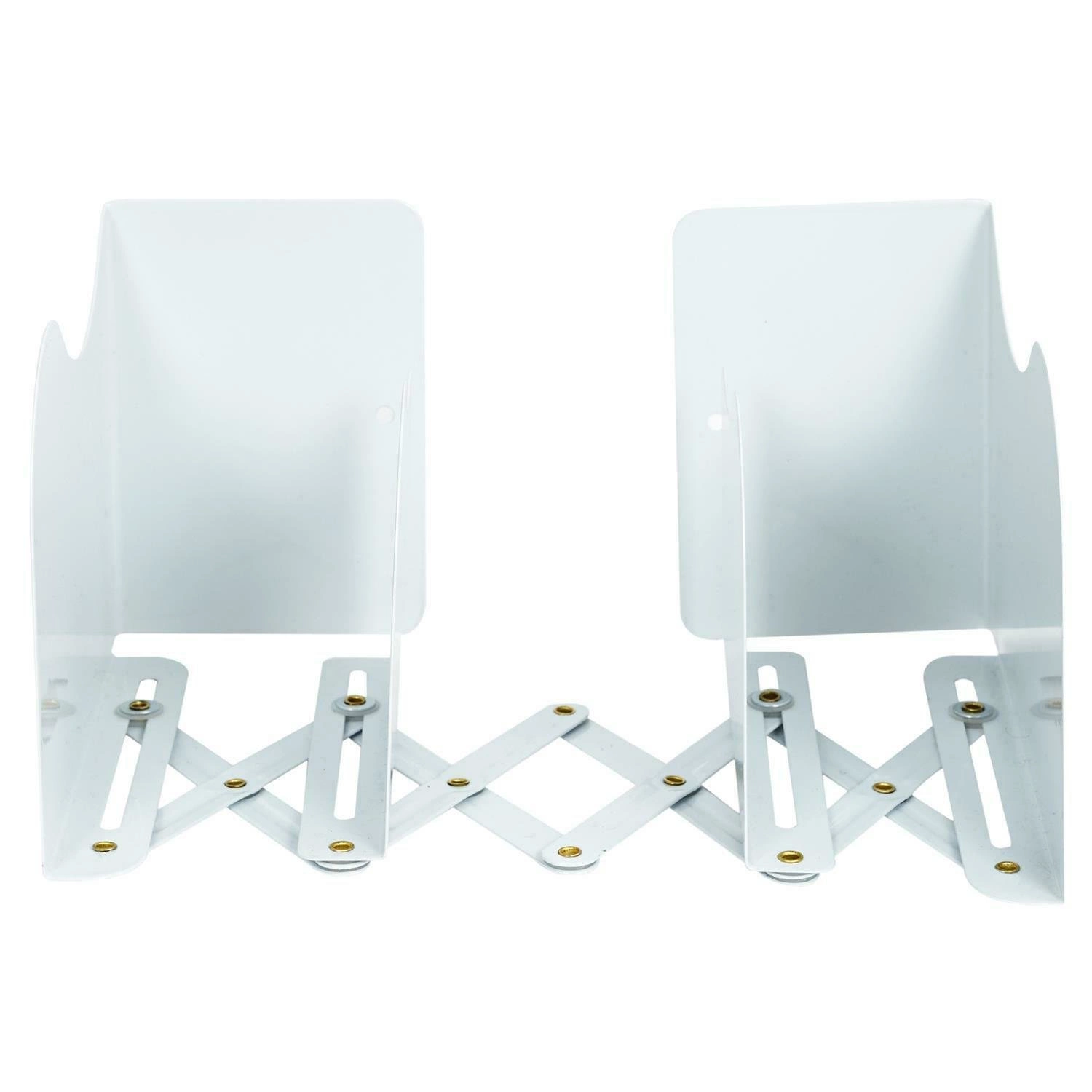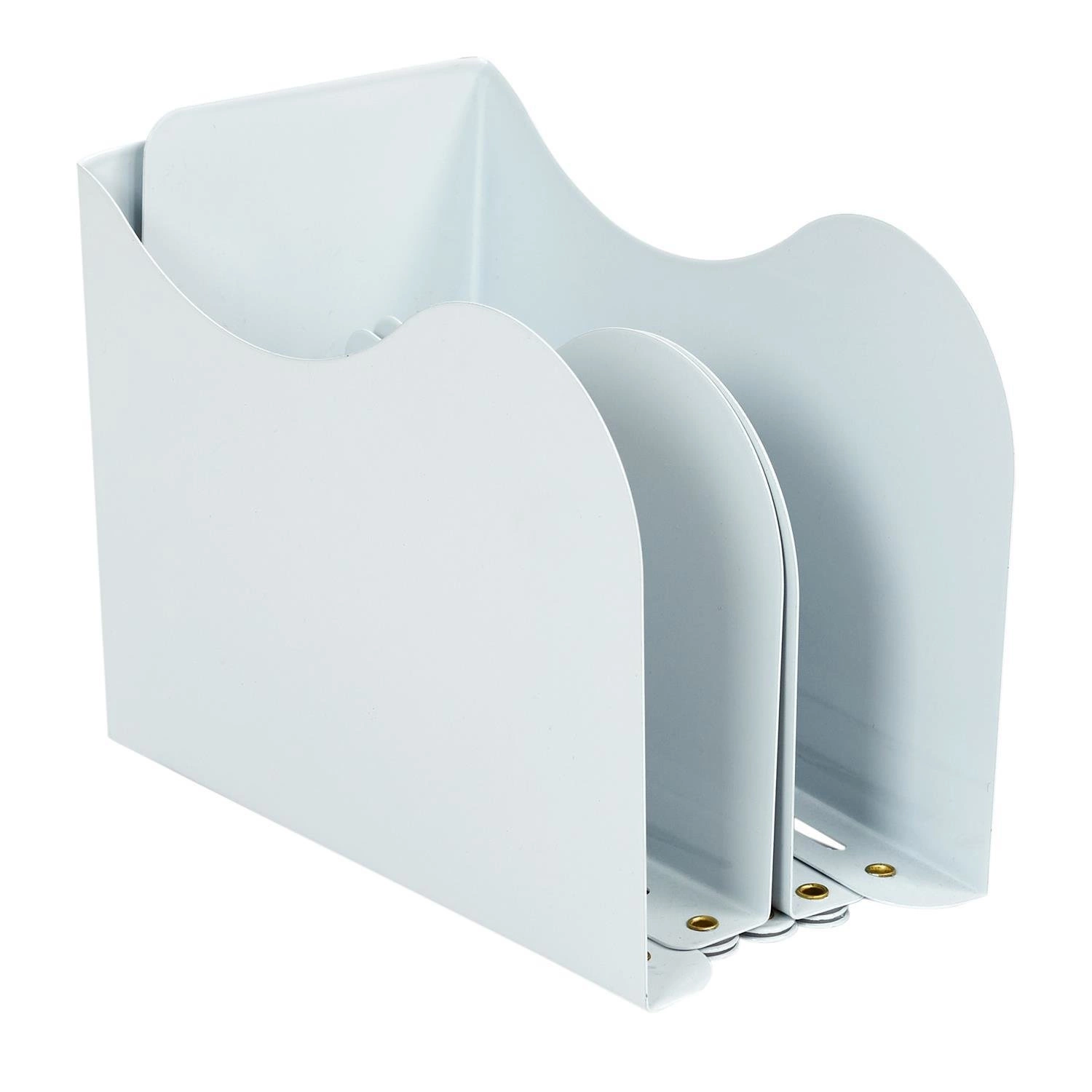 Ten malowany na biało metalowy organizer na książki o regulowanej szerokości jest idealnym dodatkiem do każdej domowej biblioteki lub biura. Posiada dwie boczne ścianki i dwie przegródki, dzięki czemu można łatwo zorganizować i przechowywać książki, segregatory i inne materiały. Regulowana szerokość pozwala na dostosowanie rozmiaru organizera do przestrzeni, którą dysponujesz (10-46cm).