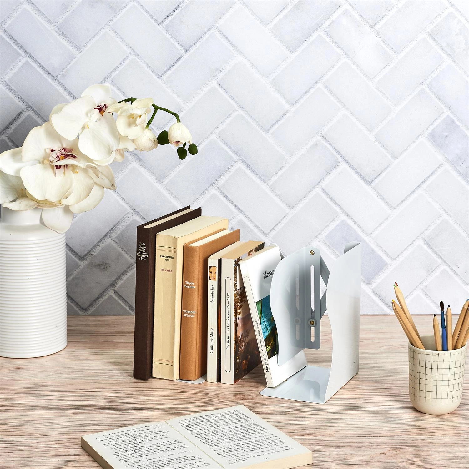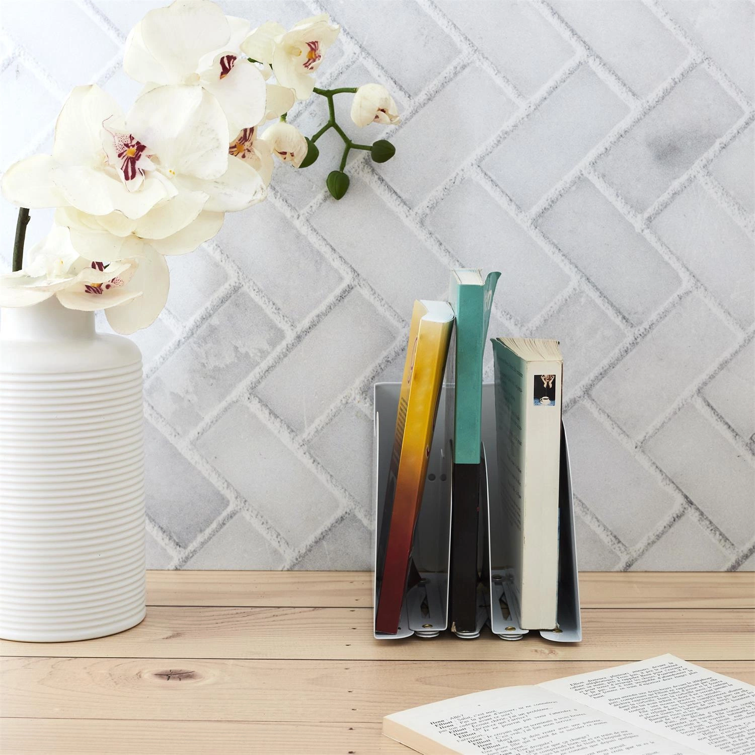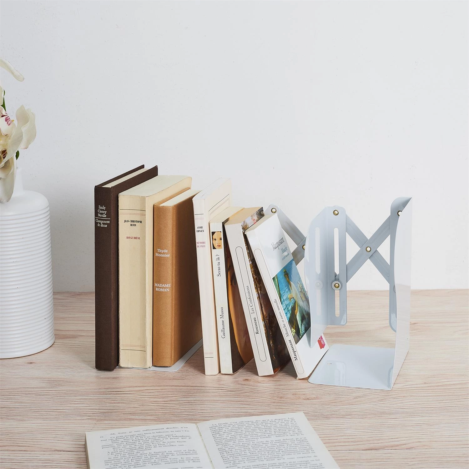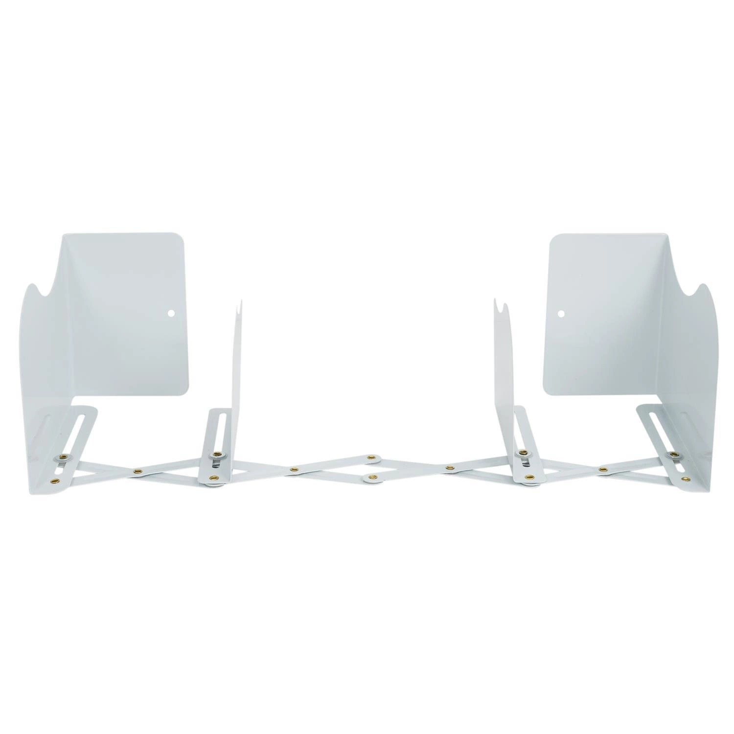 Ten malowany na biało metalowy organizer na książki o regulowanej szerokości jest idealnym dodatkiem do każdej domowej biblioteki lub biura. Posiada dwie boczne ścianki i dwie przegródki, dzięki czemu można łatwo zorganizować i przechowywać książki, segregatory i inne materiały. Regulowana szerokość pozwala na dostosowanie rozmiaru organizera do przestrzeni, którą dysponujesz (10-46cm).