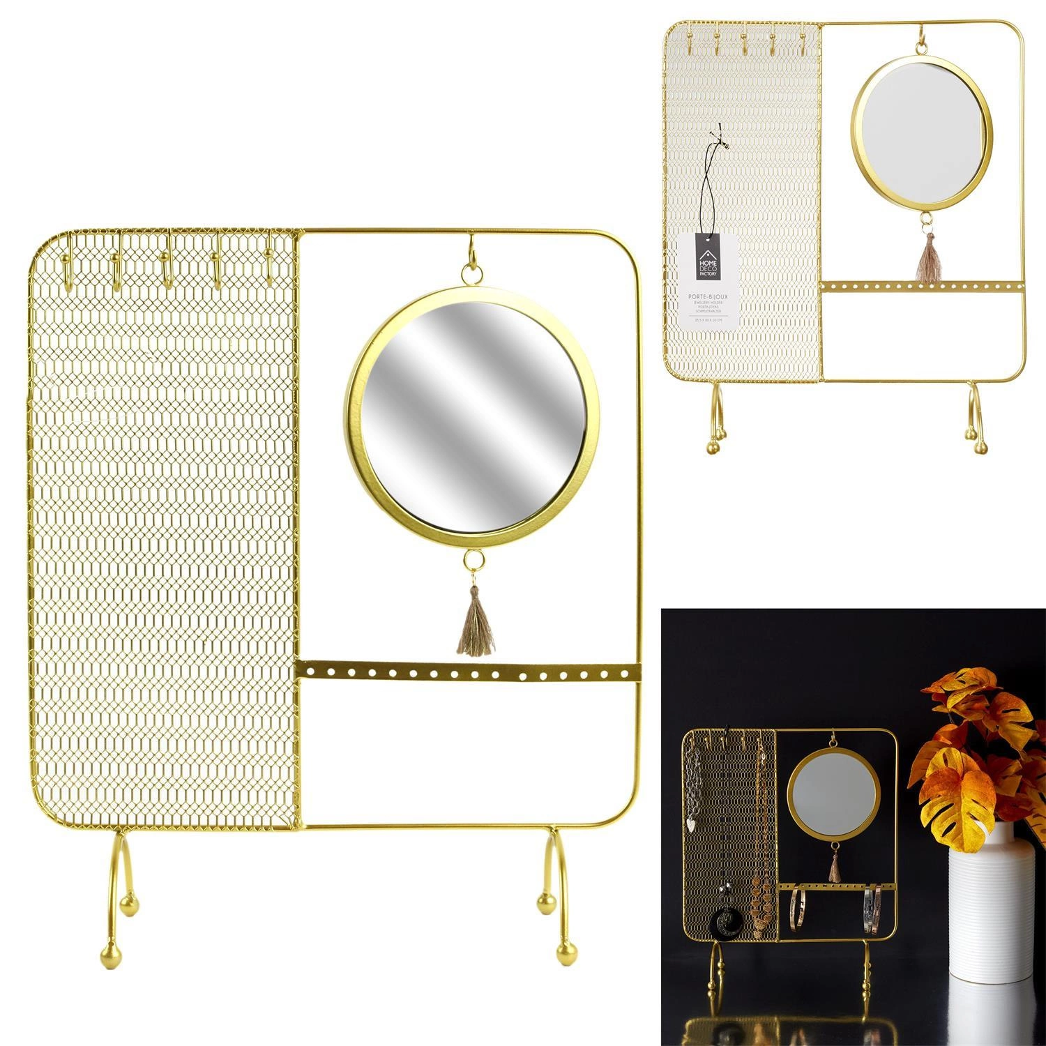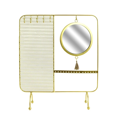 Organizer na biżuterię glamour z lustrem Intesi to propozycja dla osób ceniących styl i funkcjonalność w codziennym przechowywaniu ulubionych dodatków. Wykonany ze złotego metalu i szkła, ten stojący organizer na naszyjniki łączy w sobie elegancję glamour z praktycznym zastosowaniem. Dzięki kompaktowym wymiarom – wysokość 35,5 cm, szerokość 30 cm i głębokość 10 cm – doskonale sprawdzi się zarówno na toaletce, jak i na komodzie w sypialni lub garderobie.