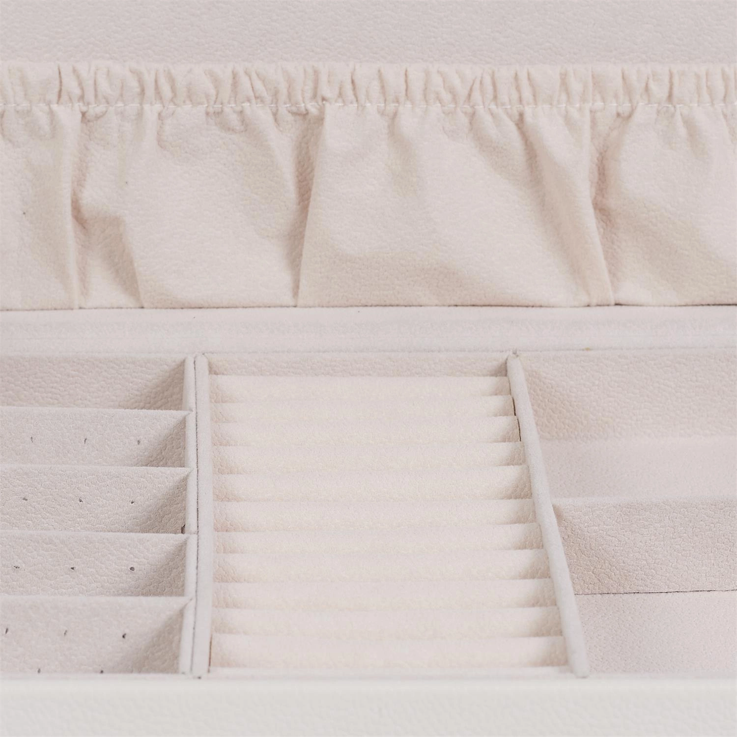 Kompaktowe rozmiary sprawiają, że organizer na biżuterię do szuflady Lady Intesi doskonale sprawdzi się w każdej przestrzeni – zarówno na toaletce, jak i w szufladzie komody czy łazienkowej półce. Solidne zamknięcie pozwala bezpiecznie przechować biżuterię również podczas podróży, a kremowy kolor łatwo dopasować do różnorodnych aranżacji wnętrz.