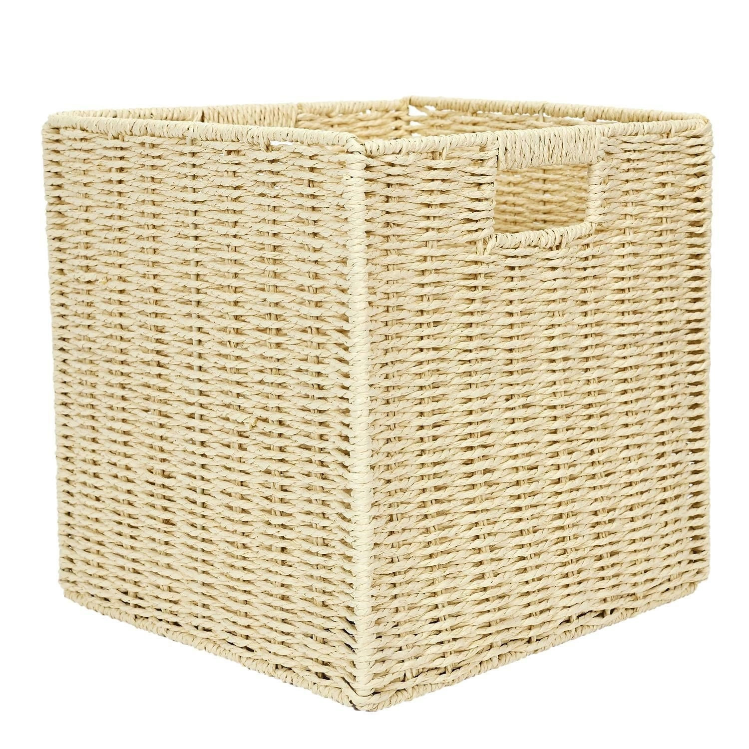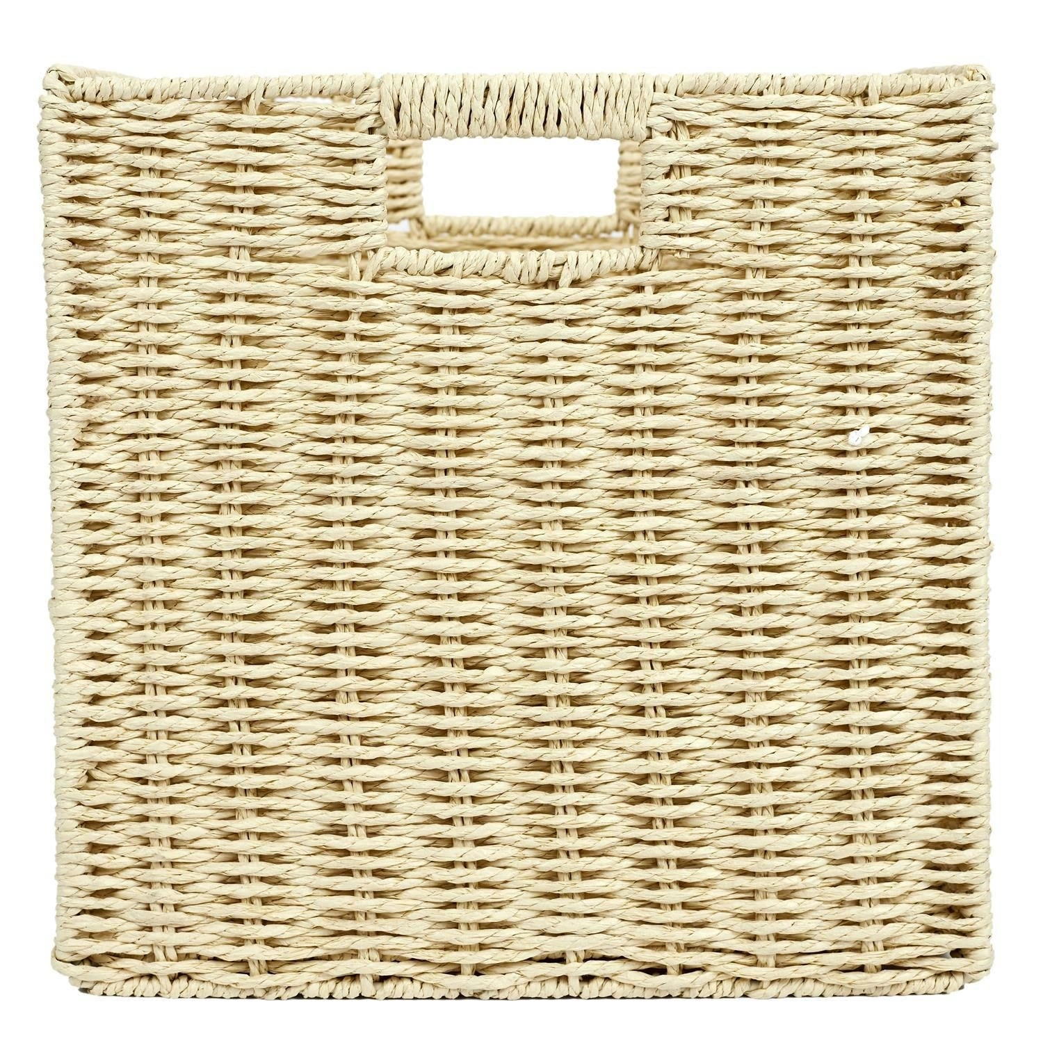 Intesi pleciony kosz do regału 30x30 w kolorze beżowym to praktyczne i stylowe pudełko składane, które doskonale sprawdzi się jako pojemnik na zabawki, ubrania czy drobiazgi. Wykonany z wytrzymałego, plecionego papieru, łączy w sobie funkcjonalność i modny styl boho, a jego kwadratowy kształt oraz wymiary 30x30x30 cm idealnie pasują do większości regałów – także popularnych modułów do przechowywania. Dzięki składanej konstrukcji i wygodnym uchwytom, organizacja przestrzeni staje się łatwa i przyjemna.