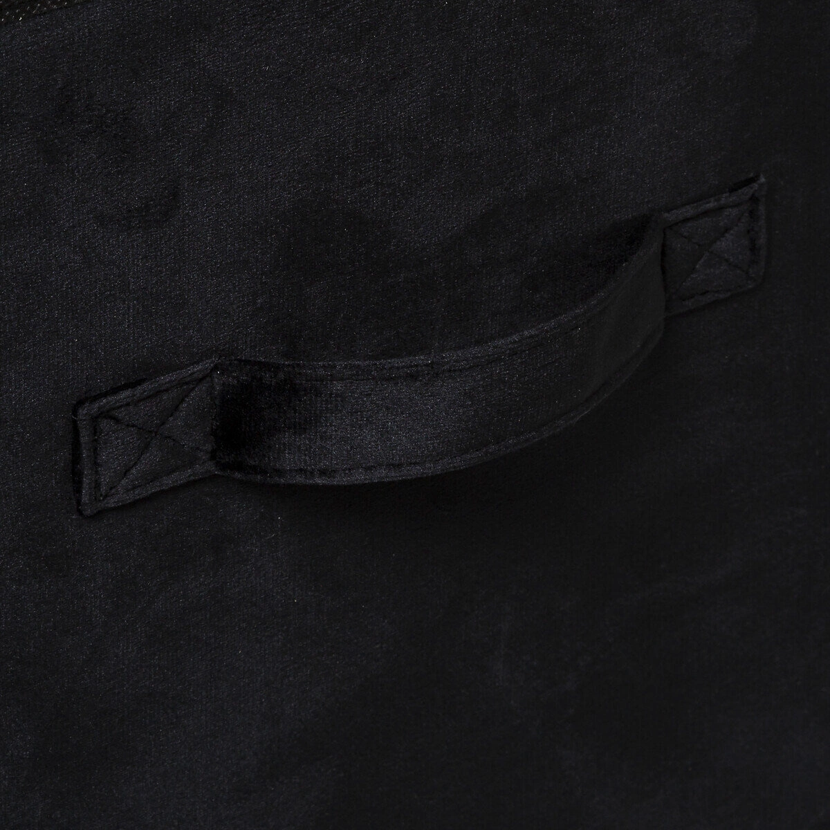 Pudełko materiałowe do regału 31x31 Velvet czarne składane z uchwytem marki 5five simply smart to praktyczny i stylowy sposób na uporządkowanie przestrzeni w domu. Kwadratowy pojemnik wykonany z miękkiego, welurowego materiału w głębokim czarnym kolorze, doskonale sprawdzi się jako pudełko do regału, do sypialni, garderoby czy pokoju dziecięcego. Składana konstrukcja oraz wygodny uchwyt zwiększają komfort codziennego użytkowania i pozwalają na szybkie przenoszenie lub przechowywanie pudełka, gdy nie jest używane.