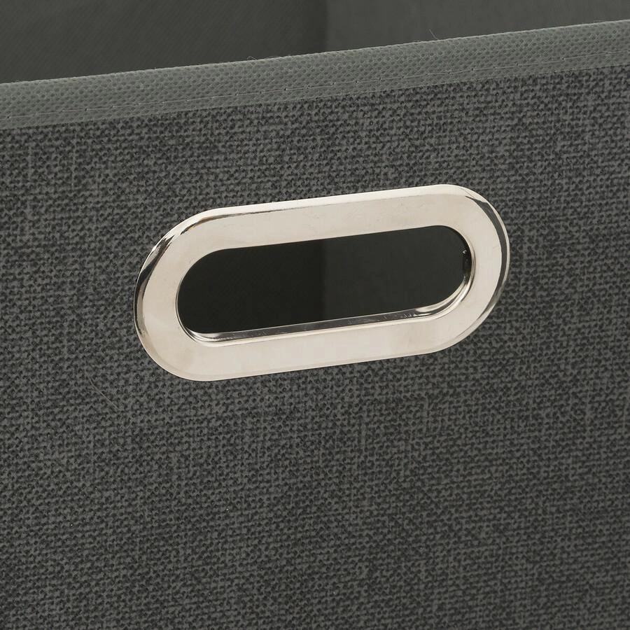 Pudełko materiałowe 5five simply smart to nie tylko użyteczny dodatek, ale również stylowy element wyposażenia. Zostało zaprojektowane z myślą o nowoczesnych wnętrzach – jego minimalistyczna forma i stonowana szarość sprawiają, że doskonale pasuje do popularnych regałów w typie Kallax oraz innych modułowych systemów. Metalowy uchwyt nie tylko ułatwia wysuwanie i przenoszenie pudełka, ale także dodaje eleganckiego, industrialnego akcentu.