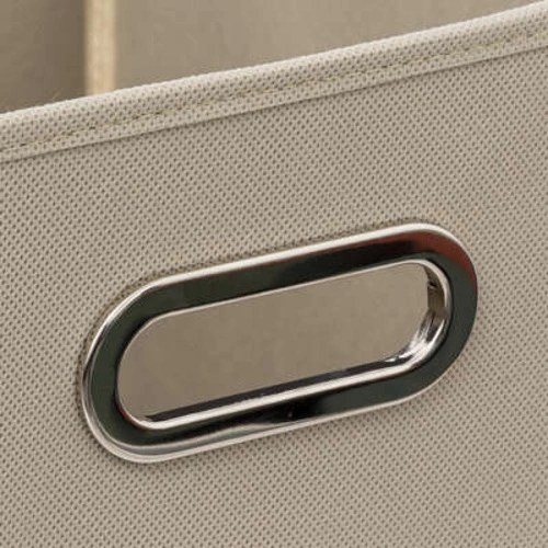 Zintegrowany metalowy uchwyt nie tylko efektownie się prezentuje, ale przede wszystkim ułatwia wyciąganie pudełka z półki i przenoszenie go w wybrane miejsce. Solidna tektura wzmocniona wysokogatunkową tkaniną gwarantuje trwałość, a konstrukcja pozwala na szybkie składanie, gdy pojemnik nie jest akurat potrzebny. To praktyczne rozwiązanie do przechowywania sezonowych ubrań, zabawek, dokumentów czy tekstyliów, które nie wymaga dużej ilości miejsca po złożeniu.