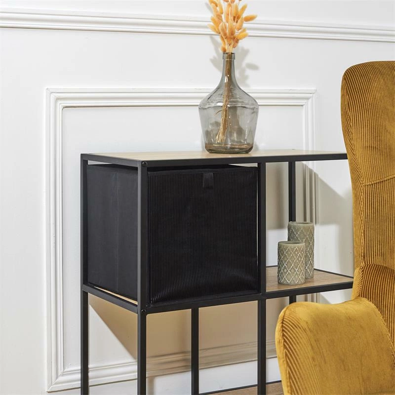 Minimalistyczny, czarny kolor oraz prosty, geometryczny kształt sprawiają, że pudełko materiałowe Giulia wprowadza do wnętrza ład i elegancję. To świetny wybór dla osób ceniących nowoczesny design oraz funkcjonalność. Pudełko harmonijnie komponuje się z regałami w stylu skandynawskim i nowoczesnym, podkreślając charakter każdego pomieszczenia.