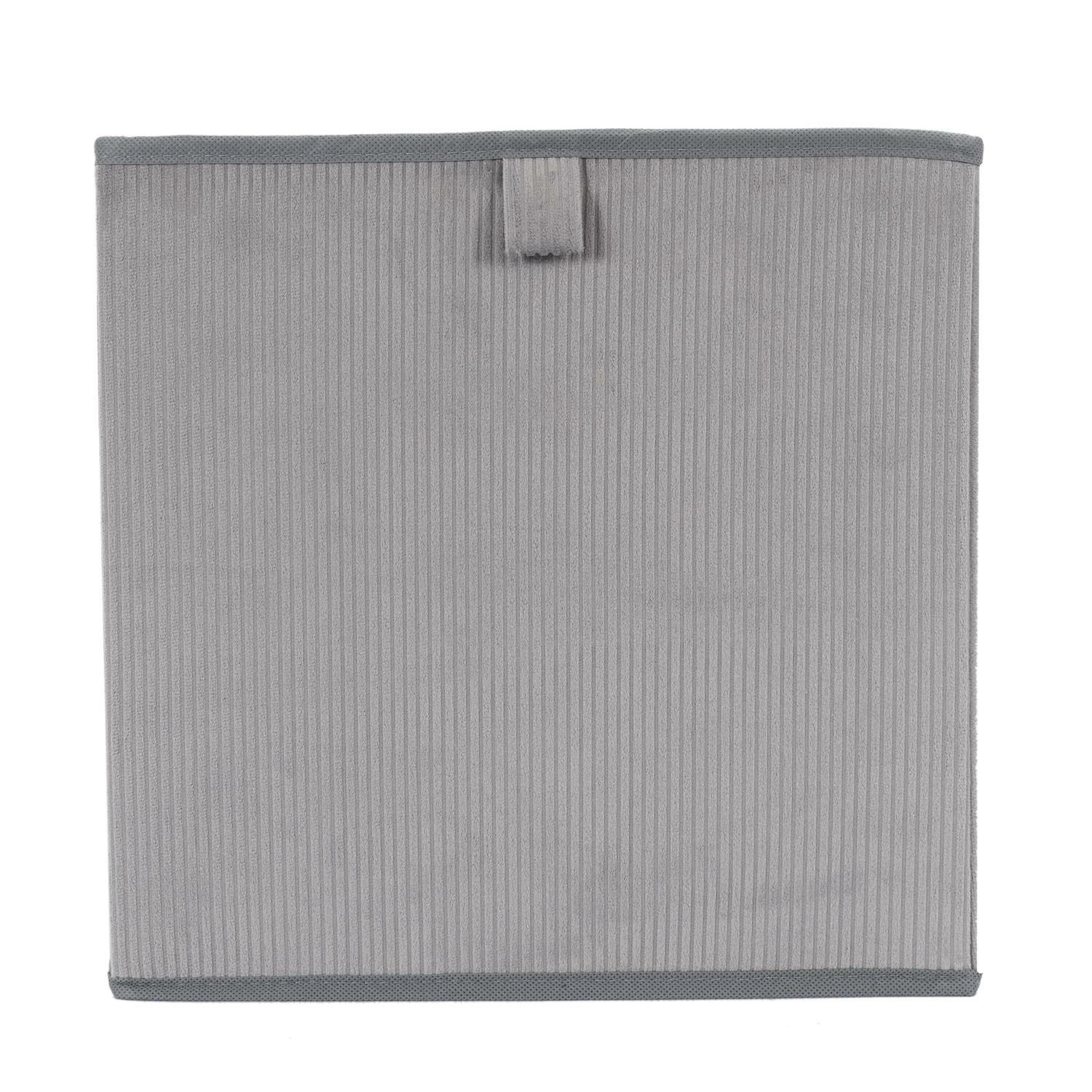 Składane pudełko do regału 30x30 Giulia szare marki Intesi to praktyczne, nowoczesne rozwiązanie do przechowywania, które łączy styl i funkcjonalność. Wykonane z materiału tekstylnego w odcieniu uniwersalnej szarości, perfekcyjnie pasuje do regałów oraz szafek o standardowym wymiarze wnęk 30x30 cm. Kwadratowa forma i składana konstrukcja czynią z niego niezastąpiony pojemnik na zabawki, ubrania lub drobiazgi – idealny do salonu, sypialni i garderoby.