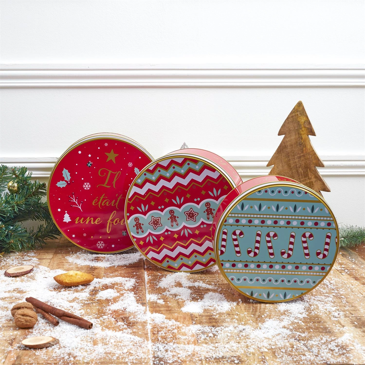 Ten komplet dekoracyjnych pudełek bożonarodzeniowych został zaprojektowany z myślą o wygodnym przechowywaniu oraz efektownej ekspozycji. Świąteczne wzory i intensywne kolory przyciągają uwagę, tworząc przytulny, rodzinny klimat w Twoim domu. Pudełka doskonale sprawdzą się jako dekoracja świąteczna do kuchni, jadalni lub salonu – możesz w nich przechowywać ulubione łakocie, suszone owoce lub wykorzystać jako oryginalny element nowoczesnego stroika na świąteczny stół.